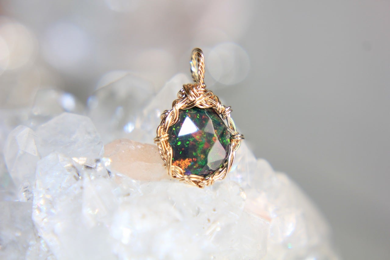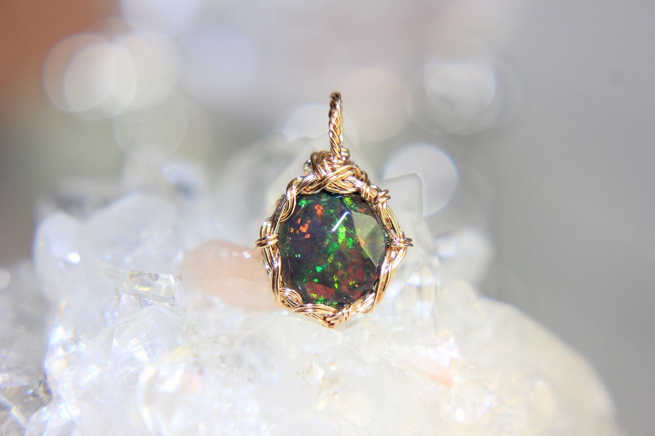 銀河の華・ブラックオパール中✨ワイヤーアートペンダント