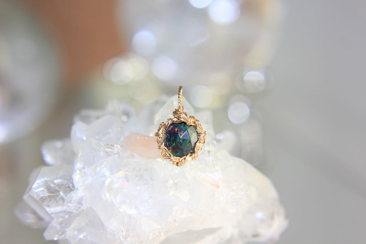 創造性・直感力・霊性を高め、魂の旅を導くとされるブラックオパールは、古代から魔術師の石として珍重されてきました。