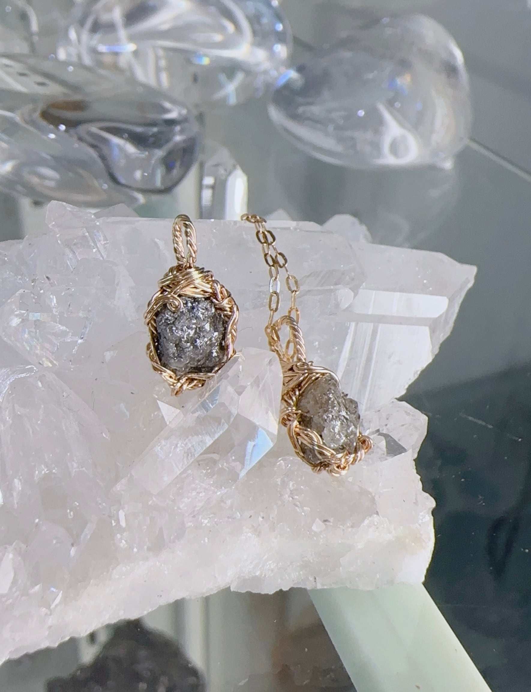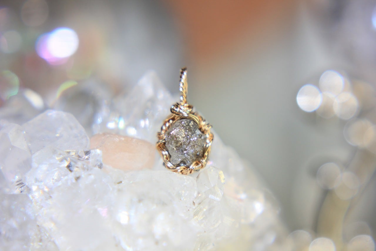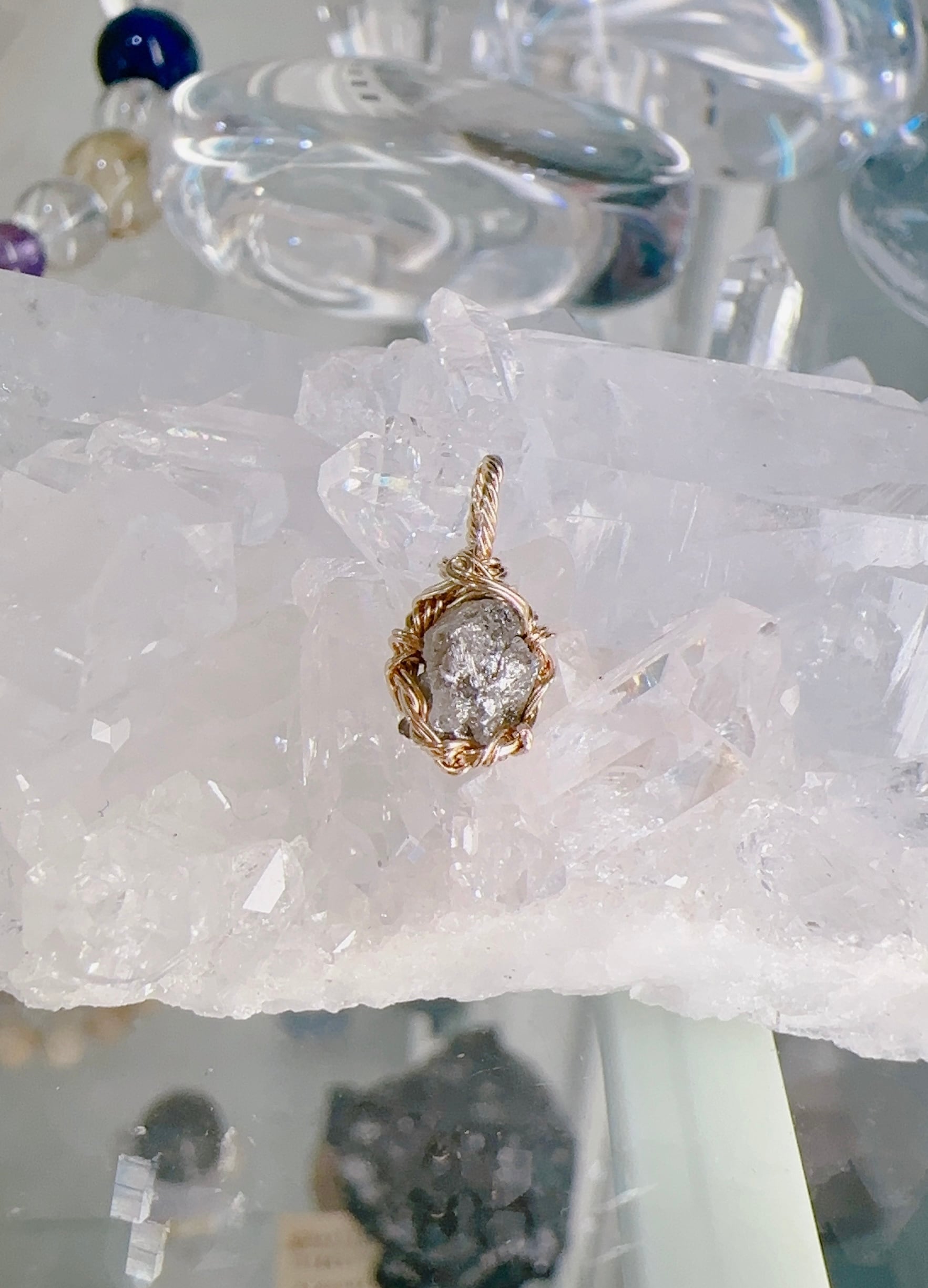 小さな奇跡✨天然ダイヤモンド原石✨ワイヤーアートペンダントトップ