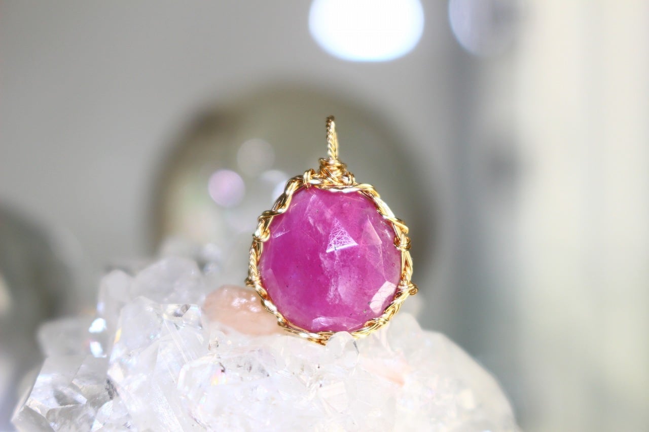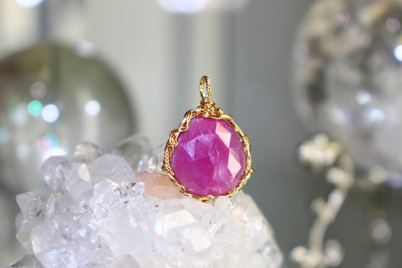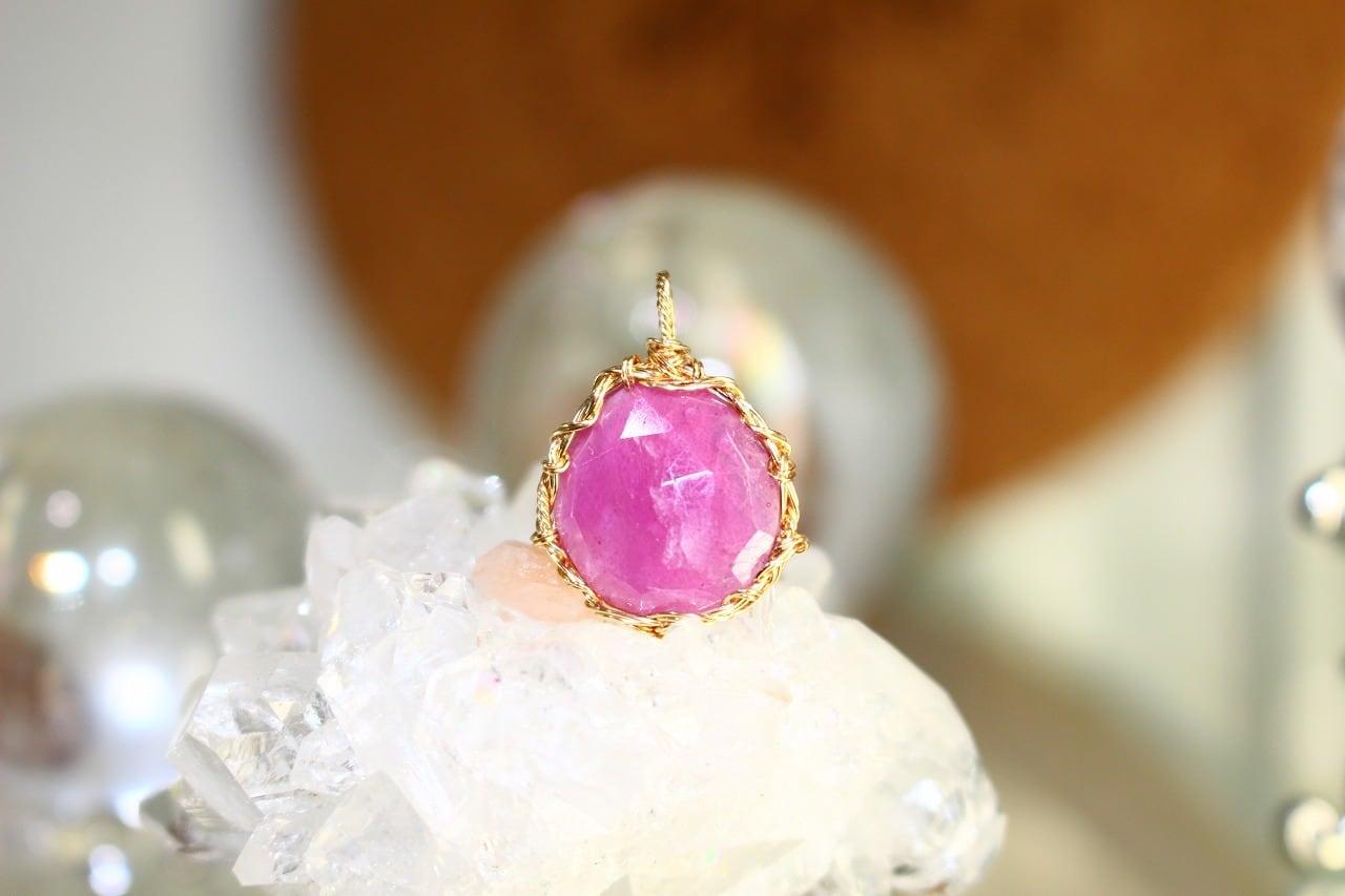 ローズピンク✨ピンクサファイア✨ワイヤーアートペンダントトップ