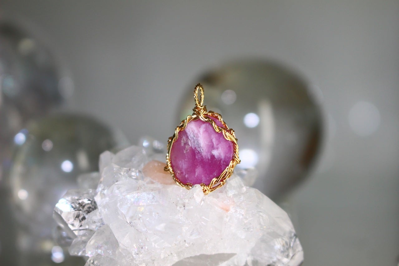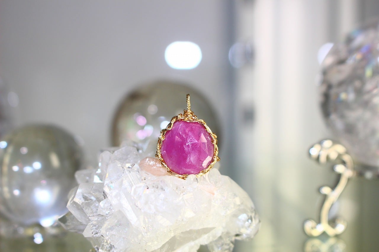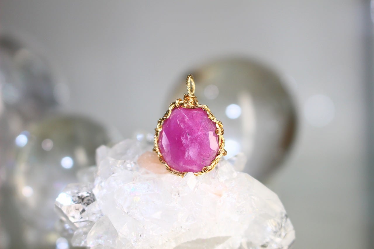 ローズピンク✨ピンクサファイア✨ワイヤーアートペンダントトップ