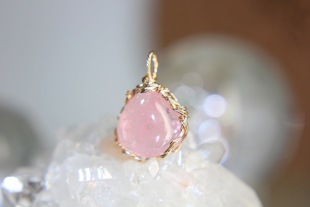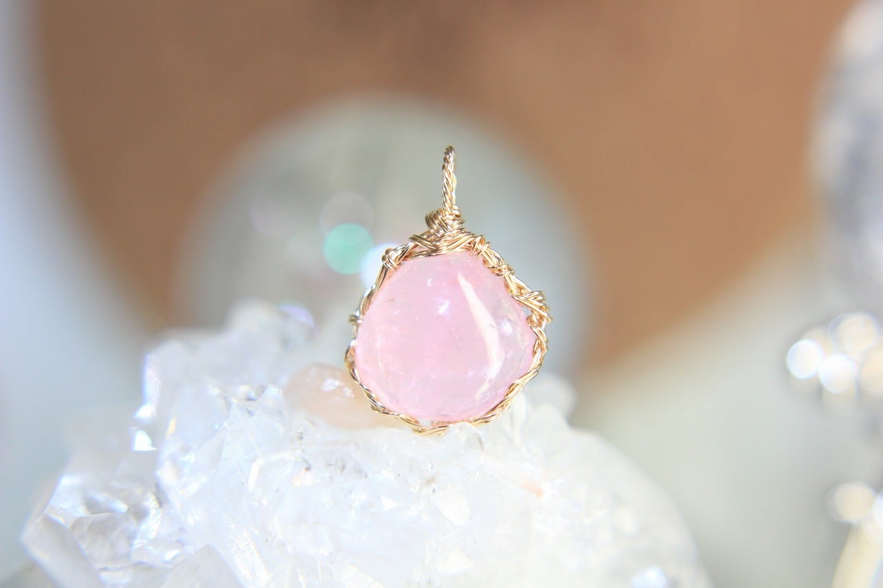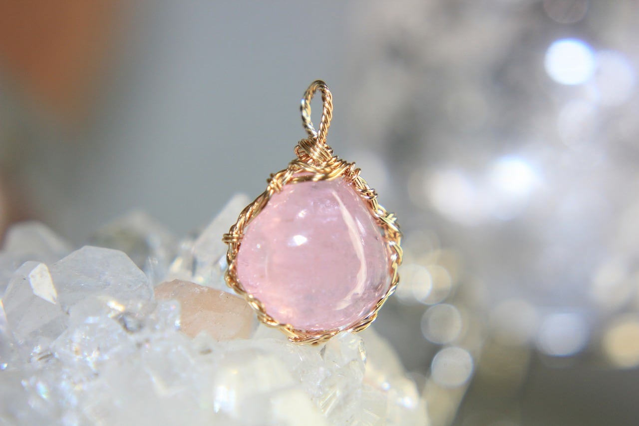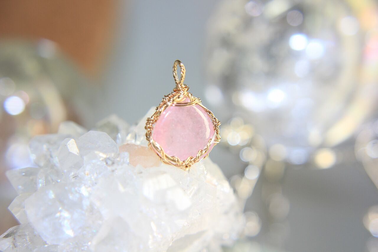 上質な桜色モルガナイト✨ワイヤーアートペンダント