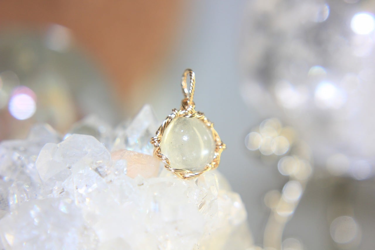 ヒーラー御用達✨上質なリビアングラス✨ワイヤーアートペンダント