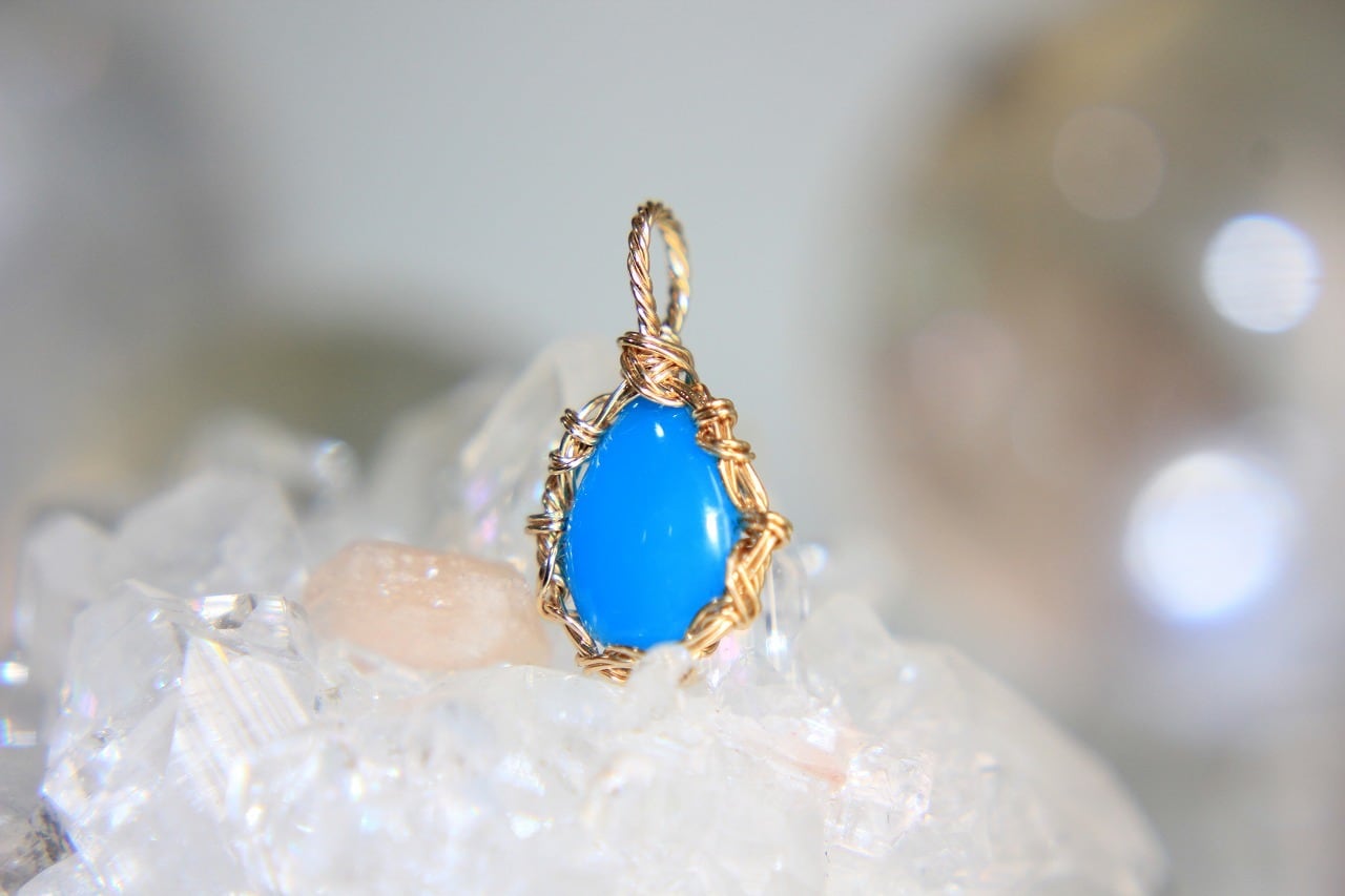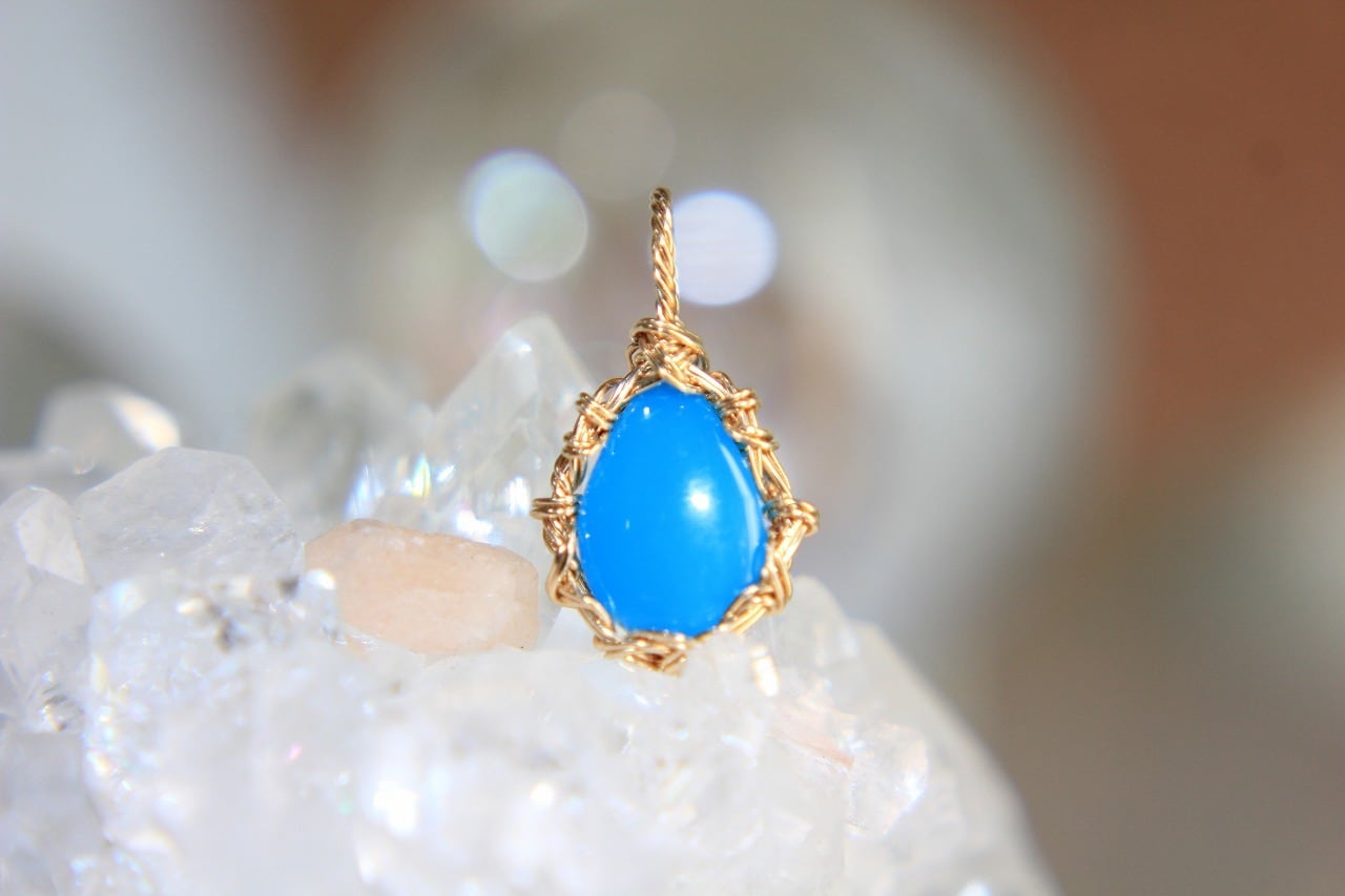 スリーピングビューティー産ターコイズ✨ワイヤーアートペンダント
