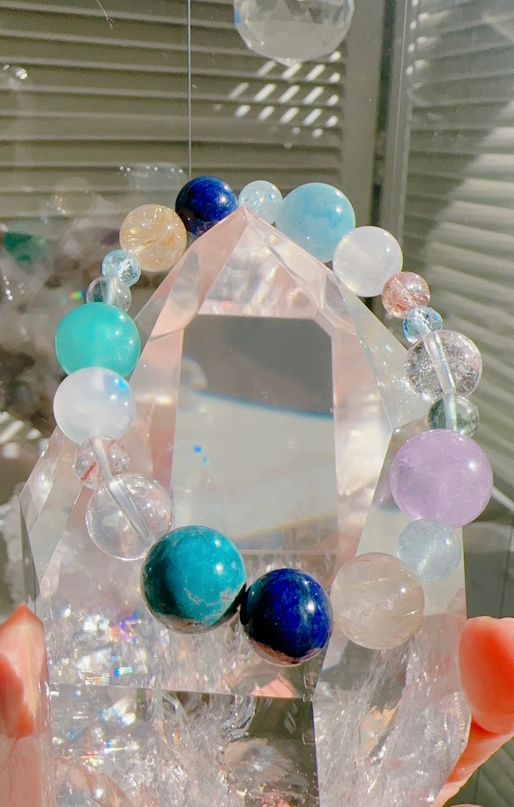 天然石サイズ 天然ターコイズ 約12mm(1個),ヒマラヤK2ムーンクォーツ約10mm(1個),ヒマラヤアイスクリスタル水晶約10mm(1個),マイカ入り水晶約6mm(2個),ブルームーンストーン約10mm(2個),モザンビーク産アマゾナイト約12mm(1個),ブルーフローライト約6mm(2個),ブルートパーズカット約5mm(2個),ラピスラズリ10mm(2個),ルチルクォーツ約10mm(2個),アクアマリン約6mm(2個),アクアマリン約12mm(1個)