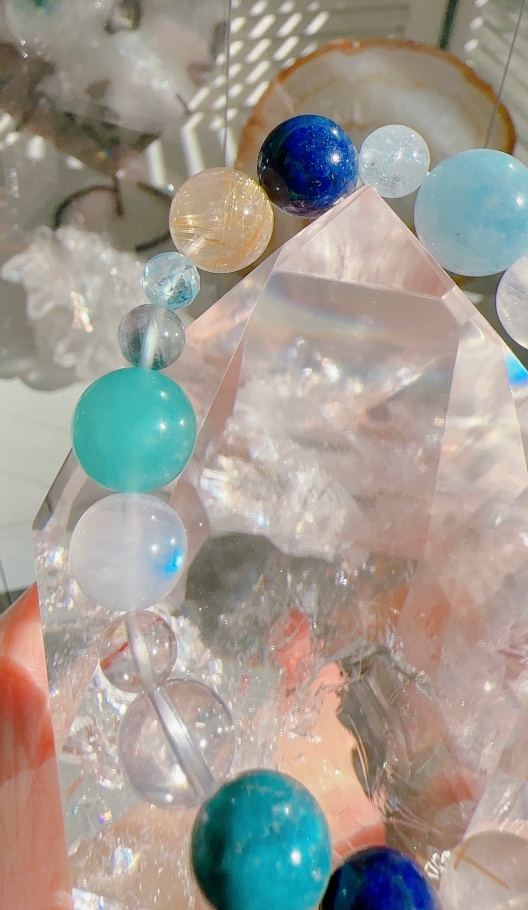 アクアマリンやフローライトは美しい水の流れを表現しています。