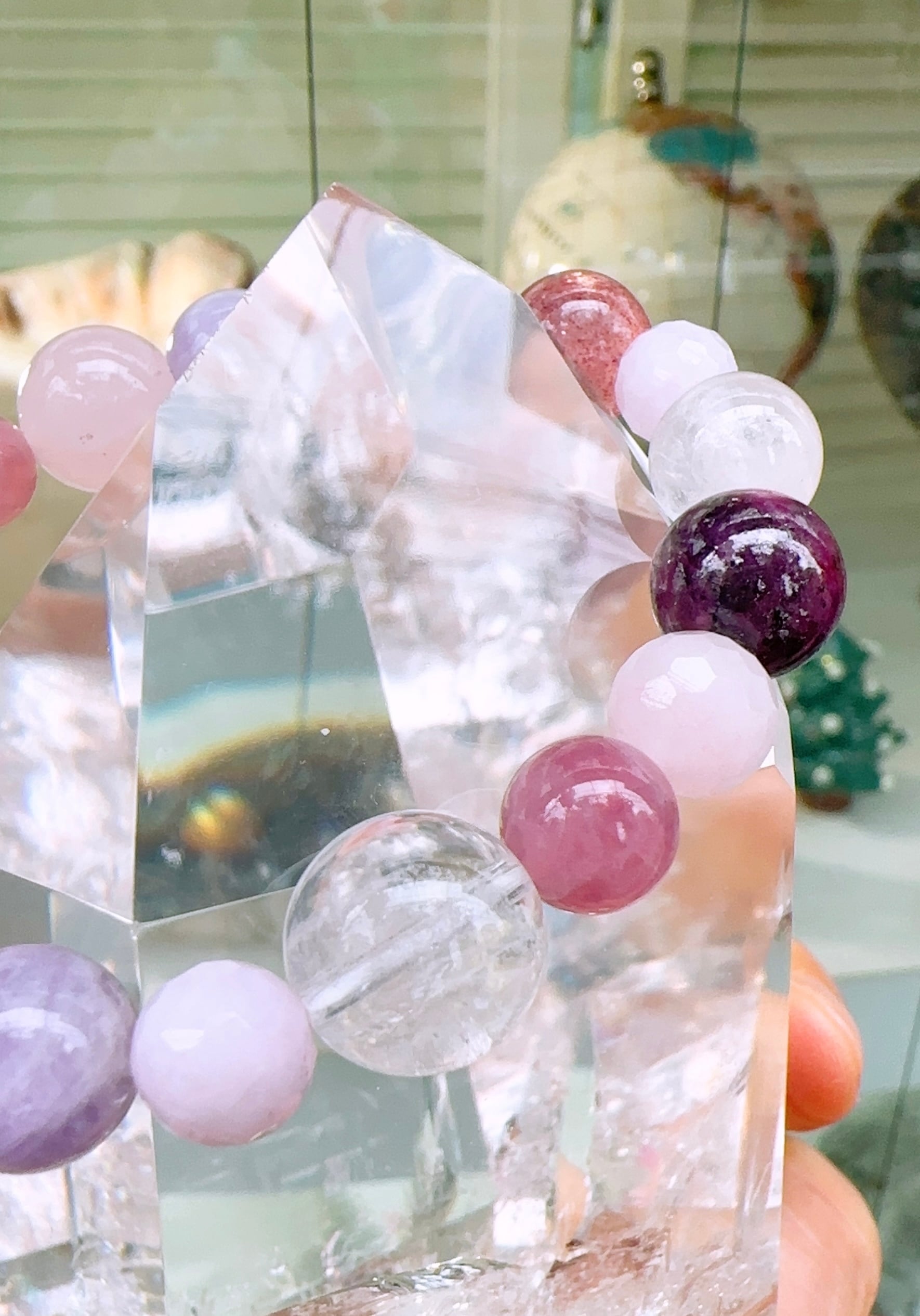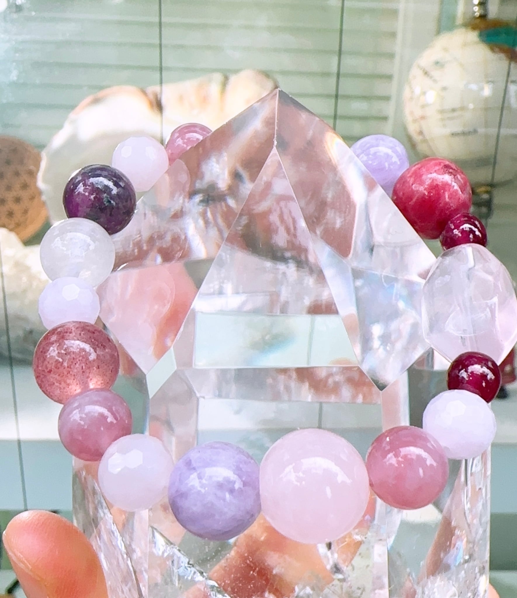 女性の心からの幸せと、内なる強さを引き出すルビーとチューライトのブレスレットを作成しました。