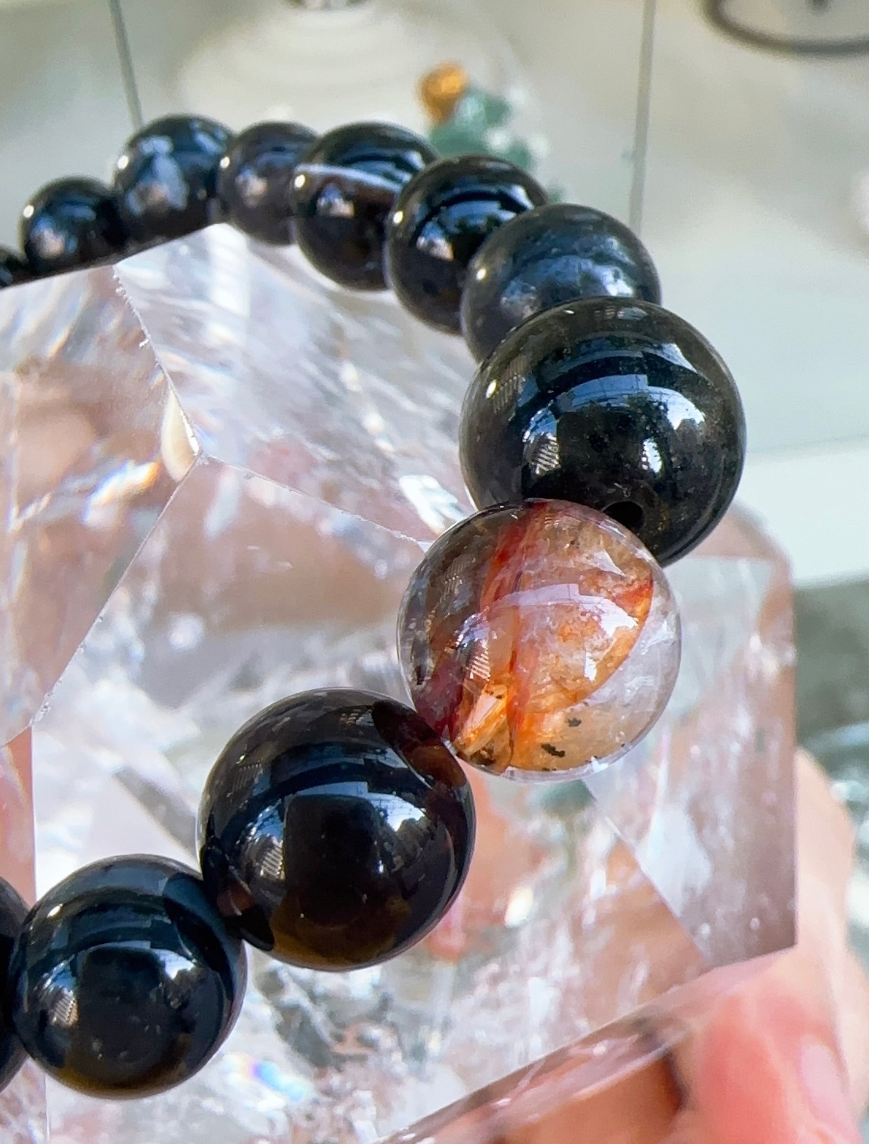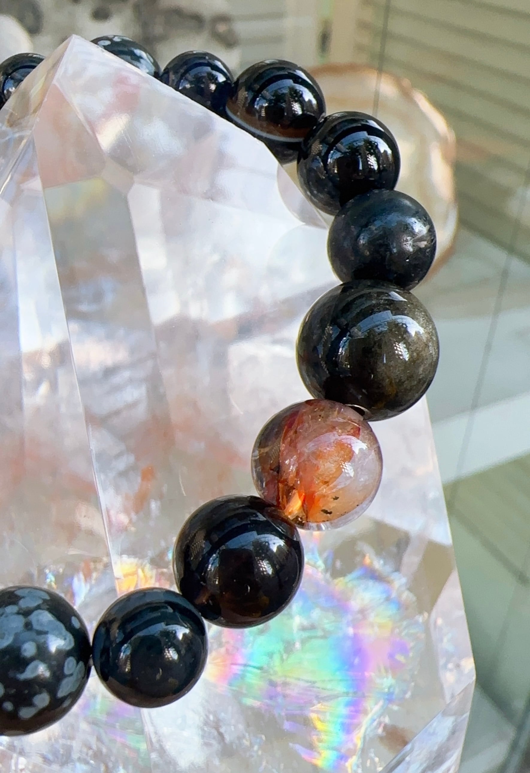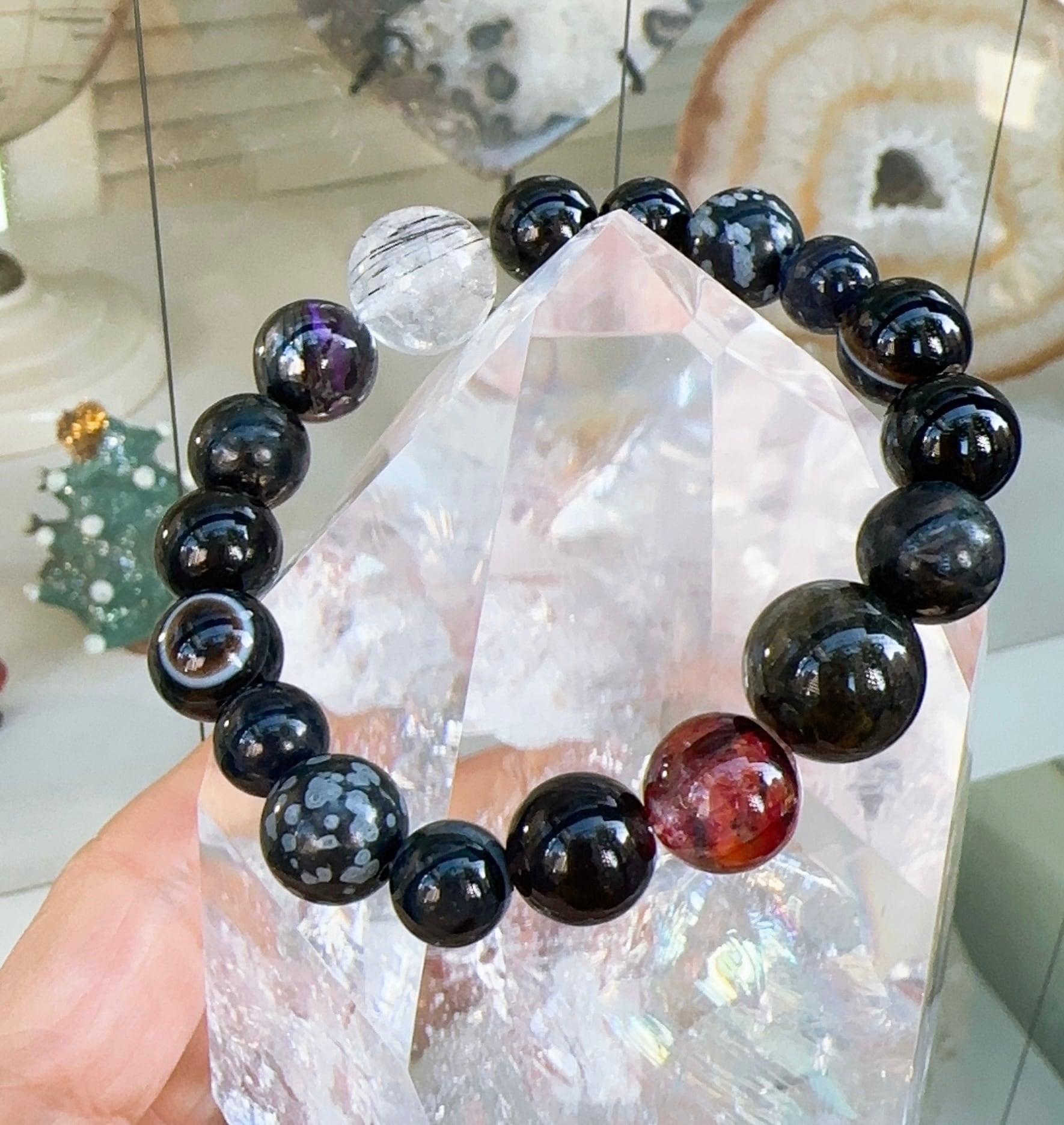 スギライト、モーリオン、ヌーマイトを使った最強の魔除けと守護のブレスレットです。