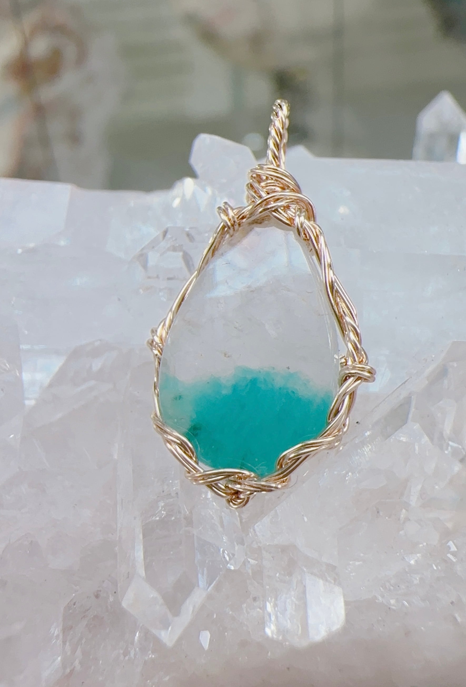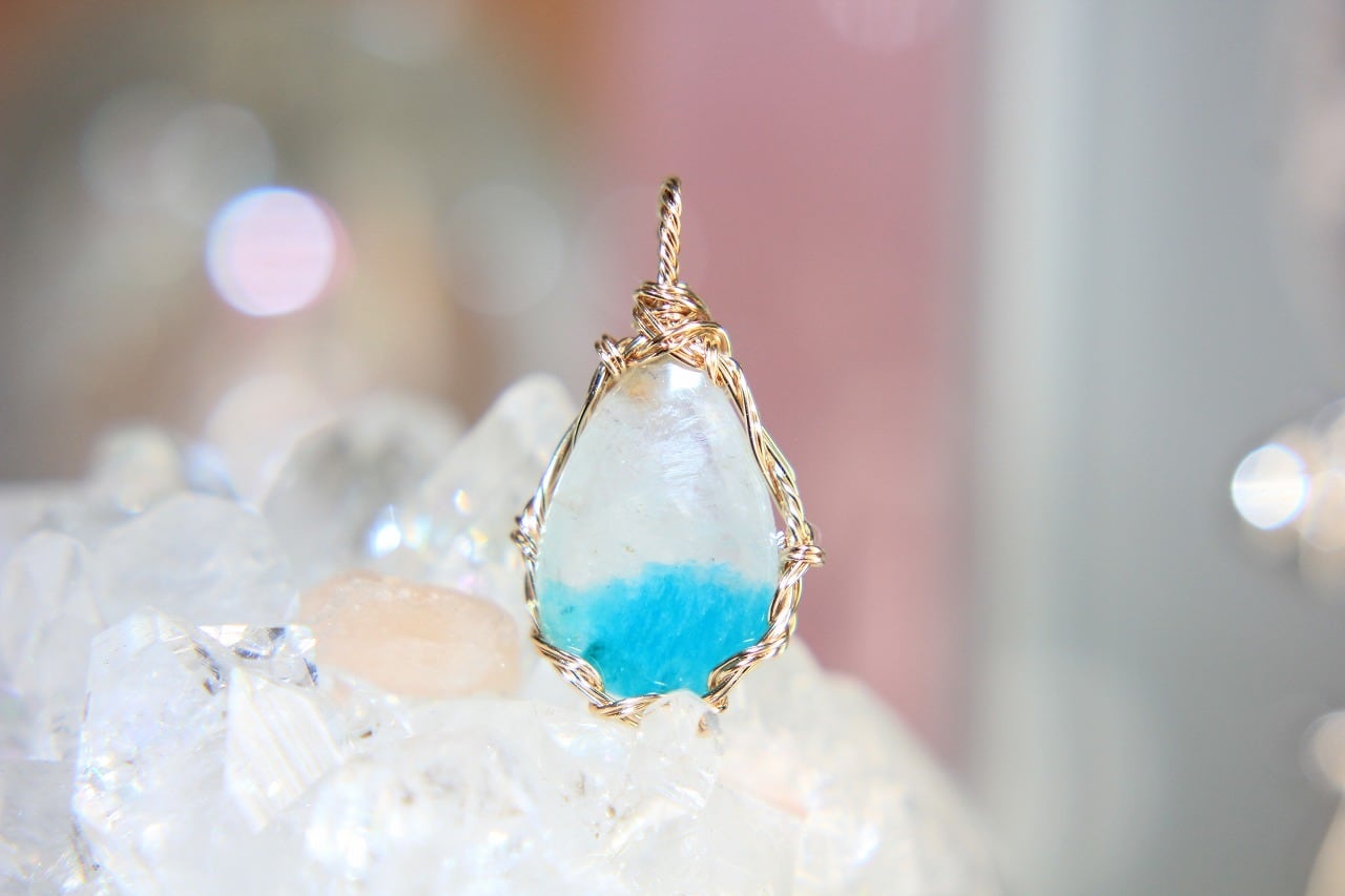 天空の奇跡⭐️アマゾナイトインクォーツ✨ワイヤーアートペンダント