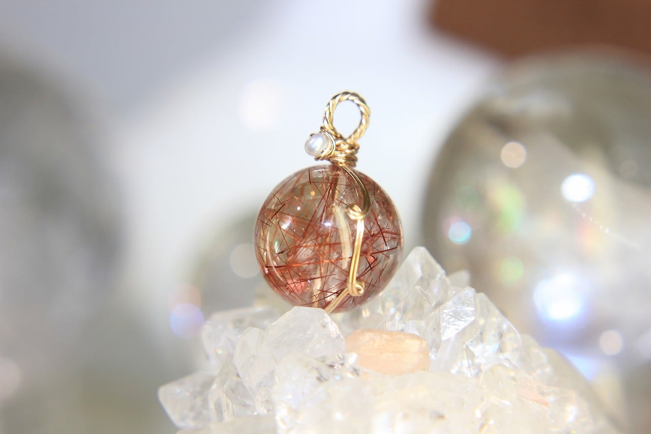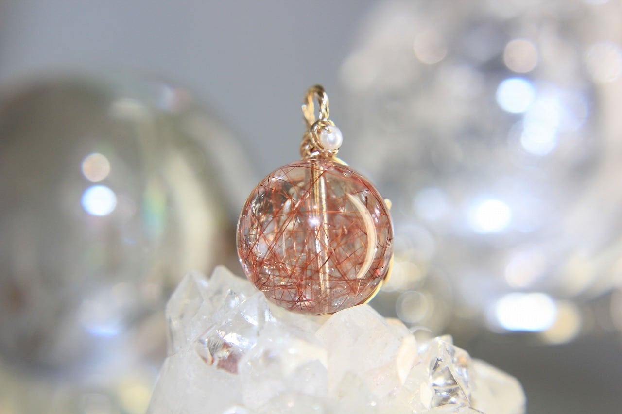 天然石 レッドルチルクォーツ 硬度7 (淡水パール)