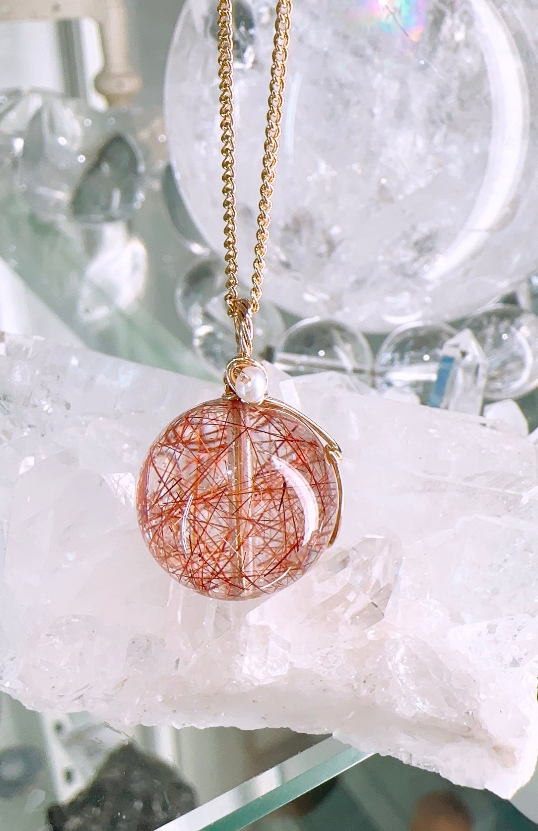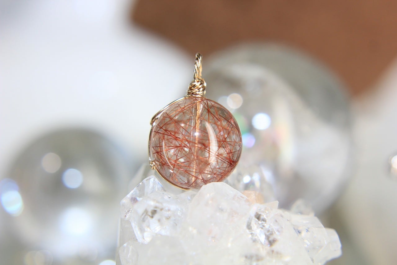 内包された金紅石(ルチル)が赤いものは稀で、とても貴重な天然石です。