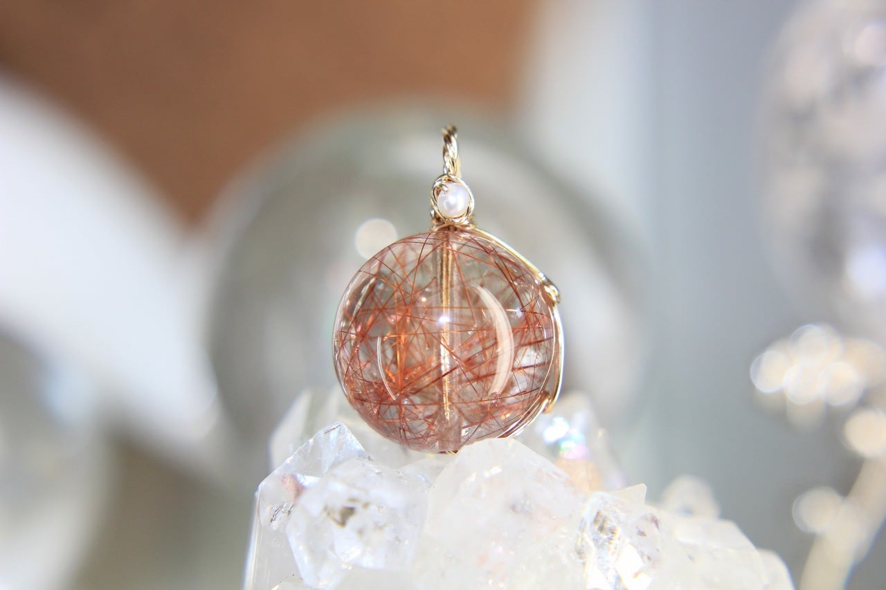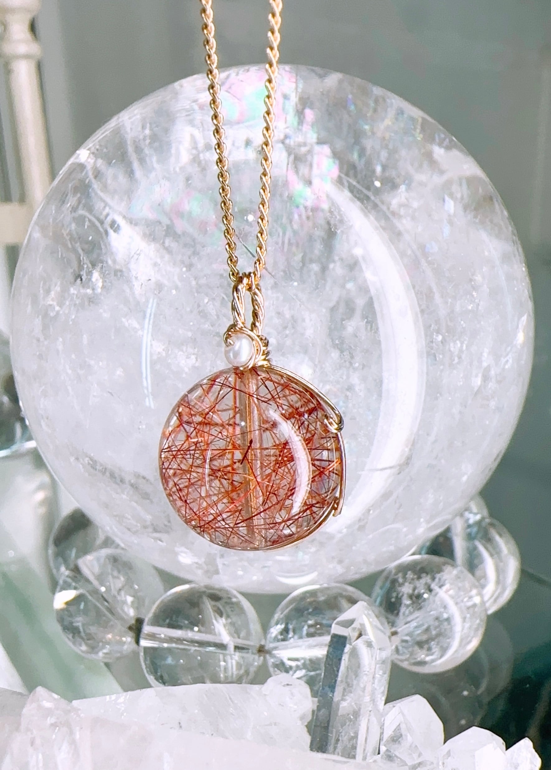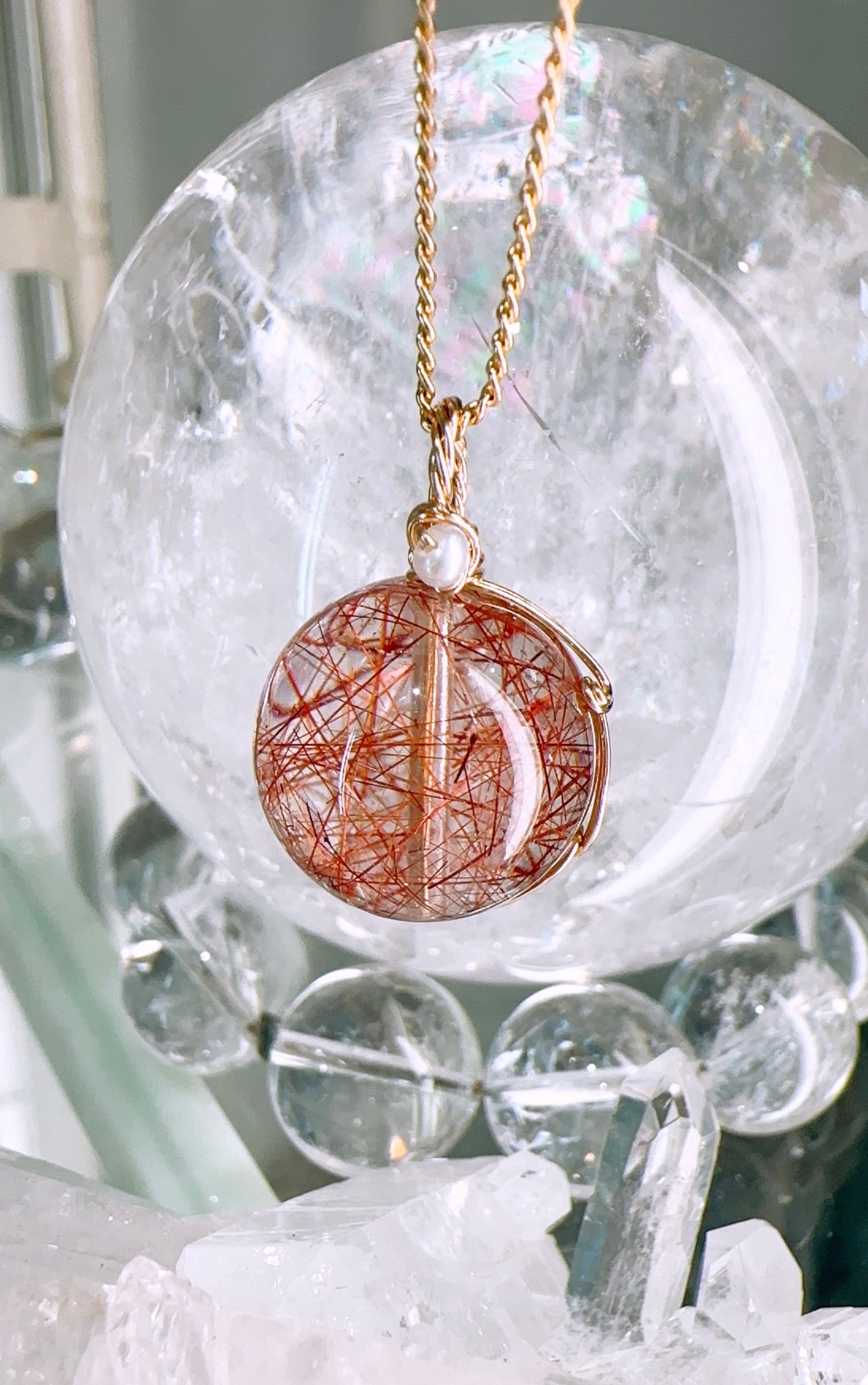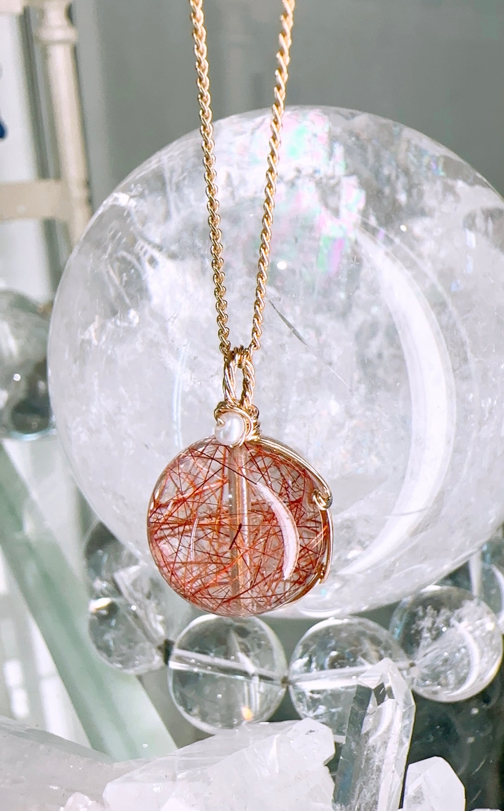 貴重⭐︎レッドルチルワイヤーアートペンダント✨パール付き(45cmチェーン付き)