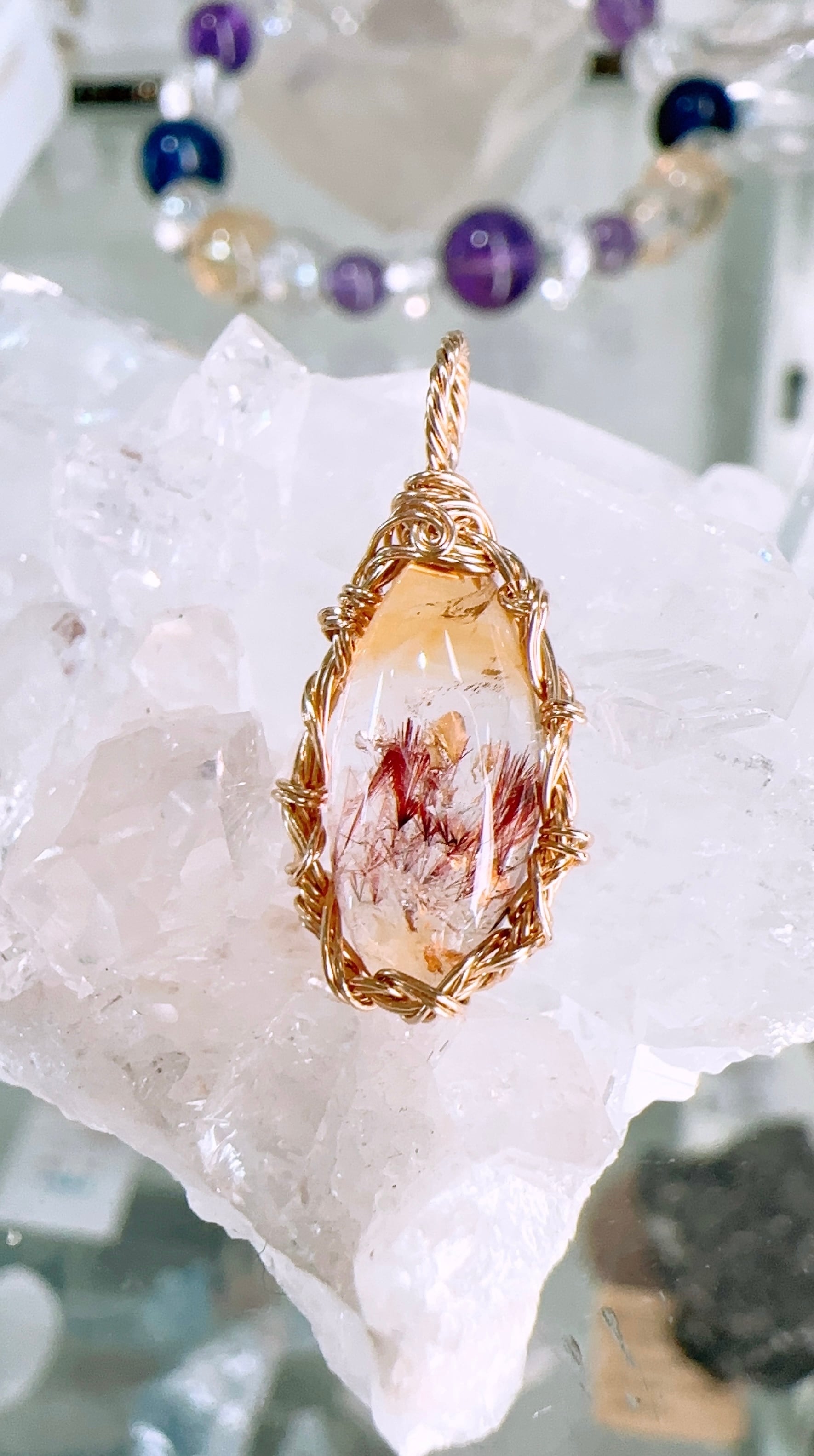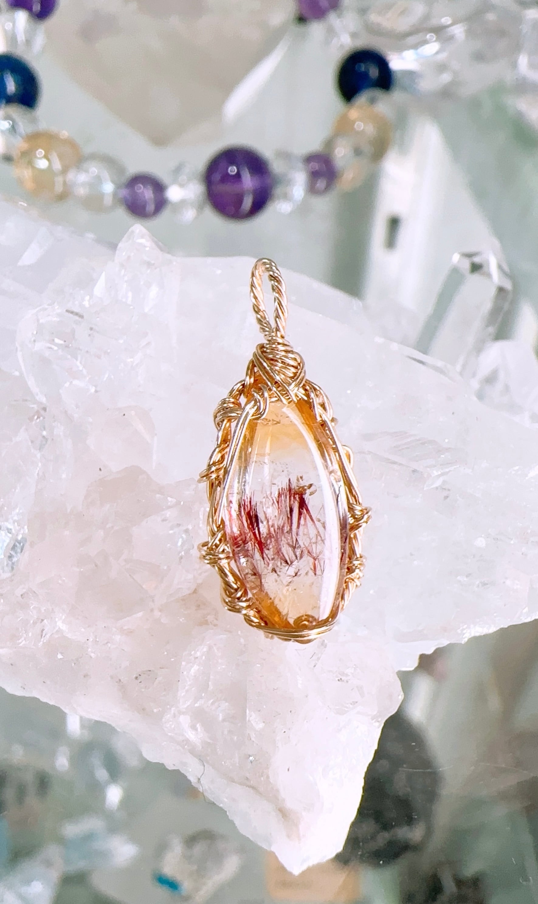 豊かさの魔法✨ゲーサイトインシトリン⭐️ワイヤーアートペンダント