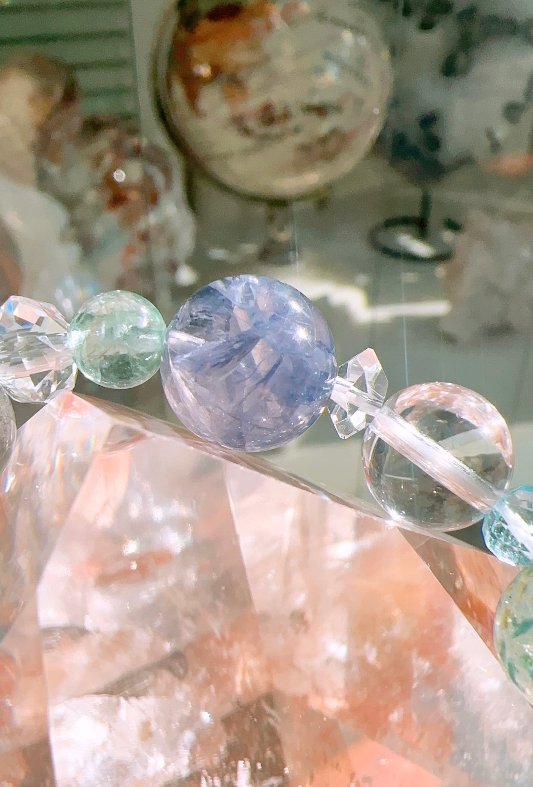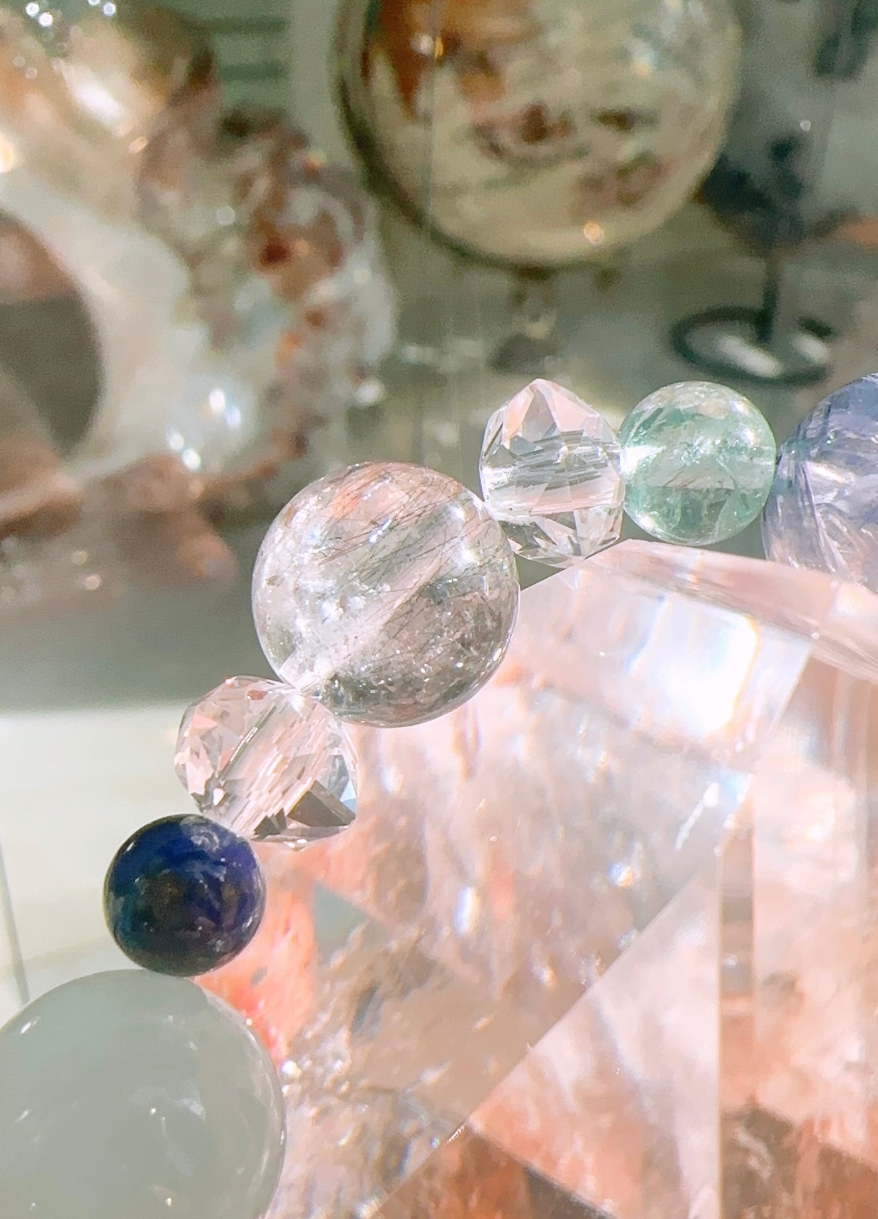 大きさも配置も自由なフールズブレスレットは、一見バラバラに見える組み合わせでも、調和の取れた1つの宇宙を形成しています。