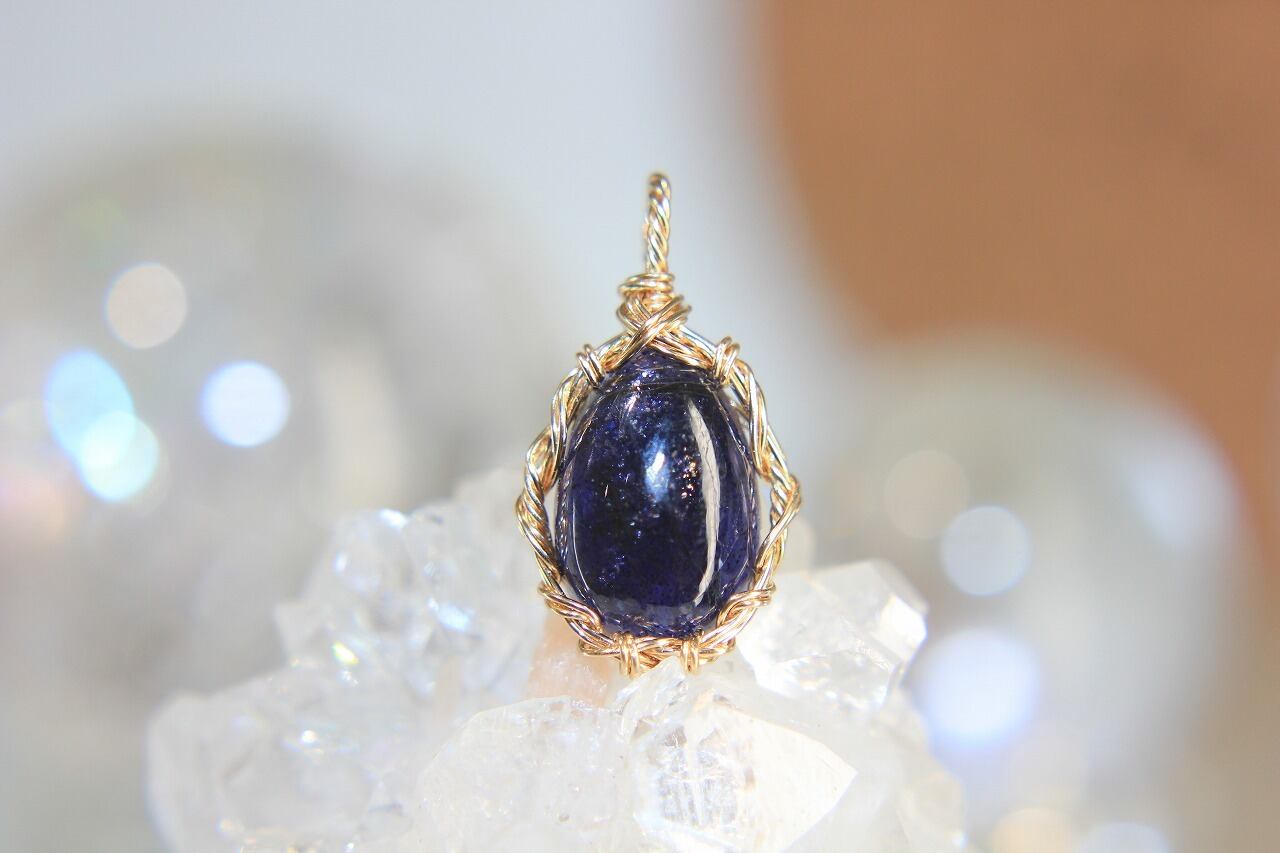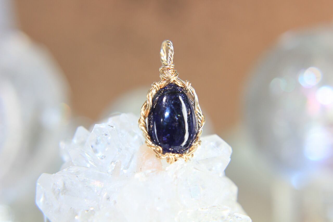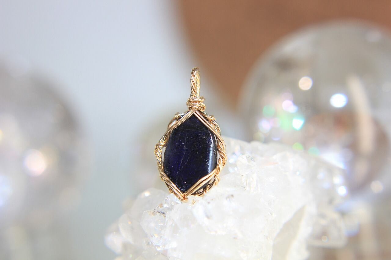 アイオライトサンストーンA☀️ワイヤーアートペンダント