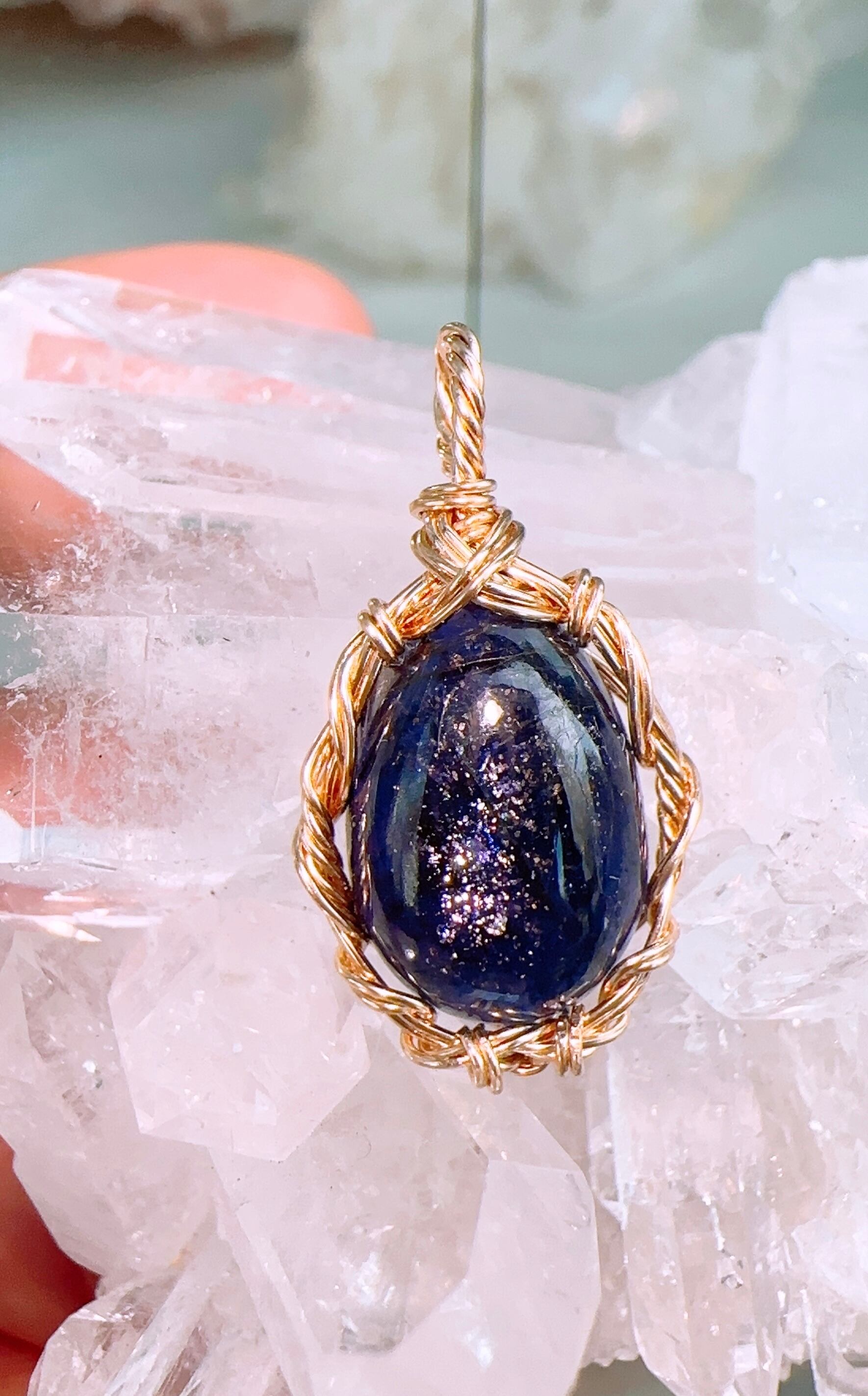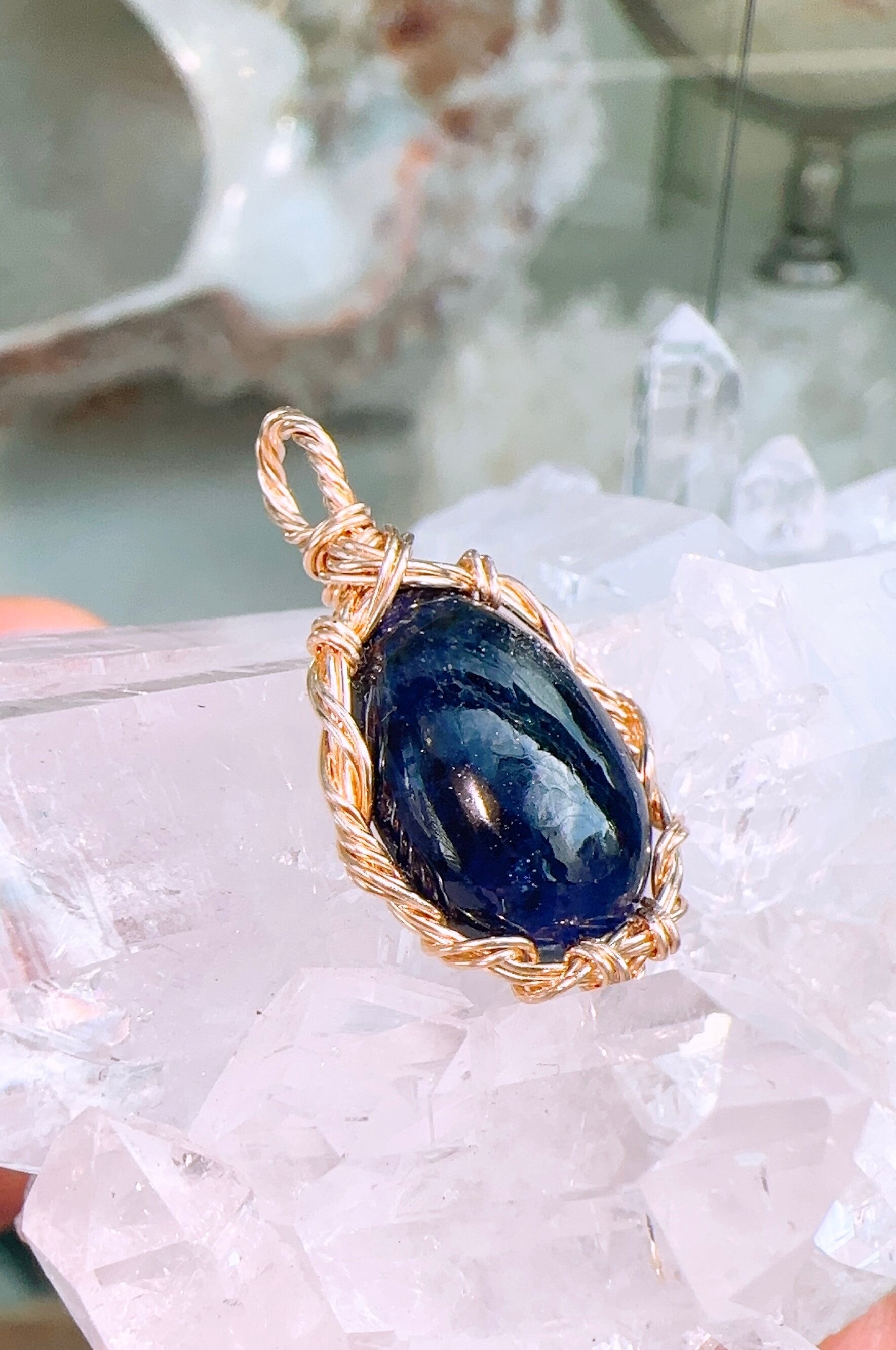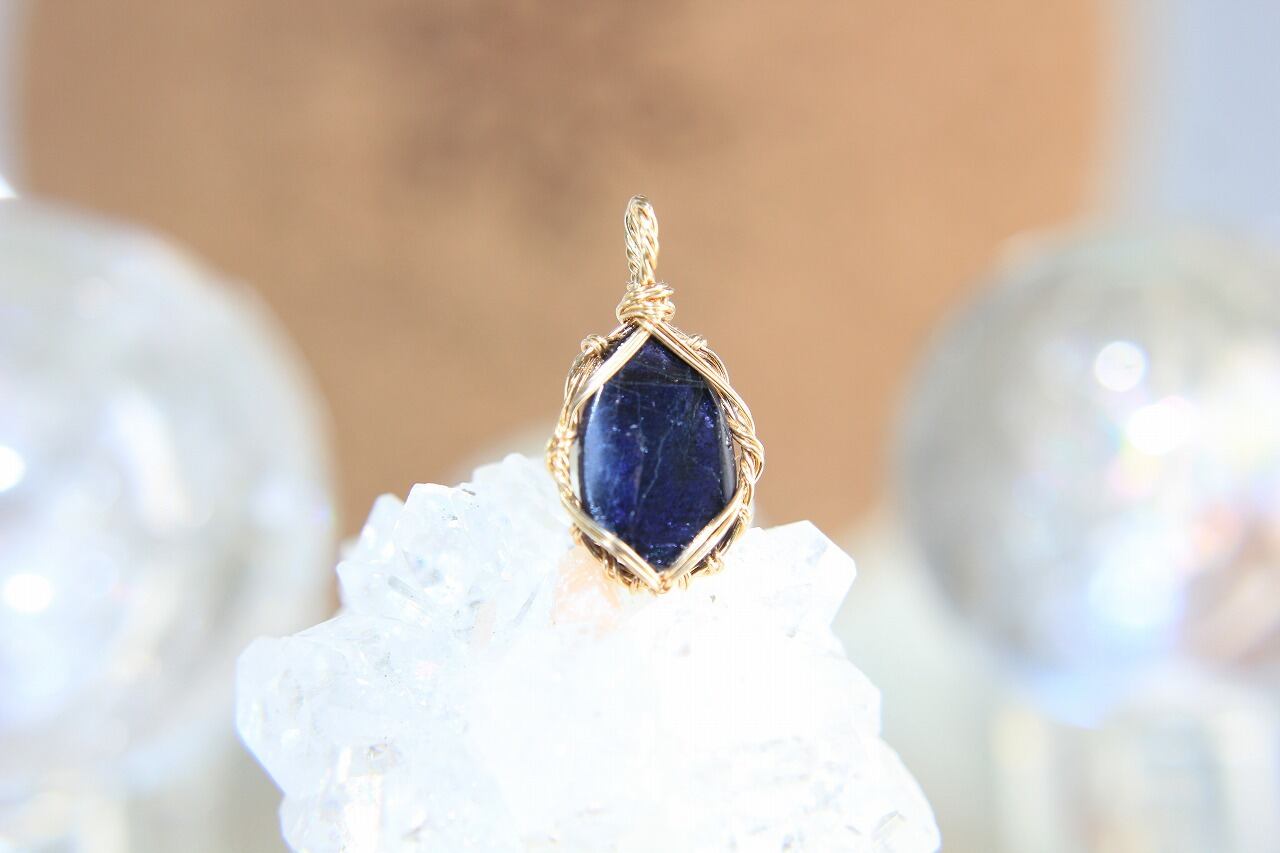 アイオライトサンストーンA☀️ワイヤーアートペンダント