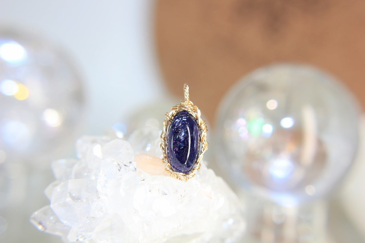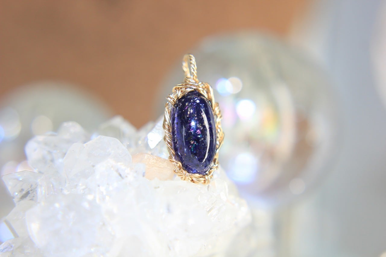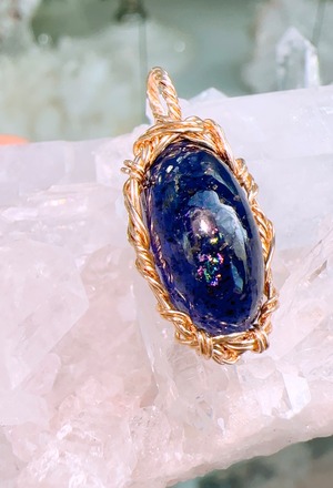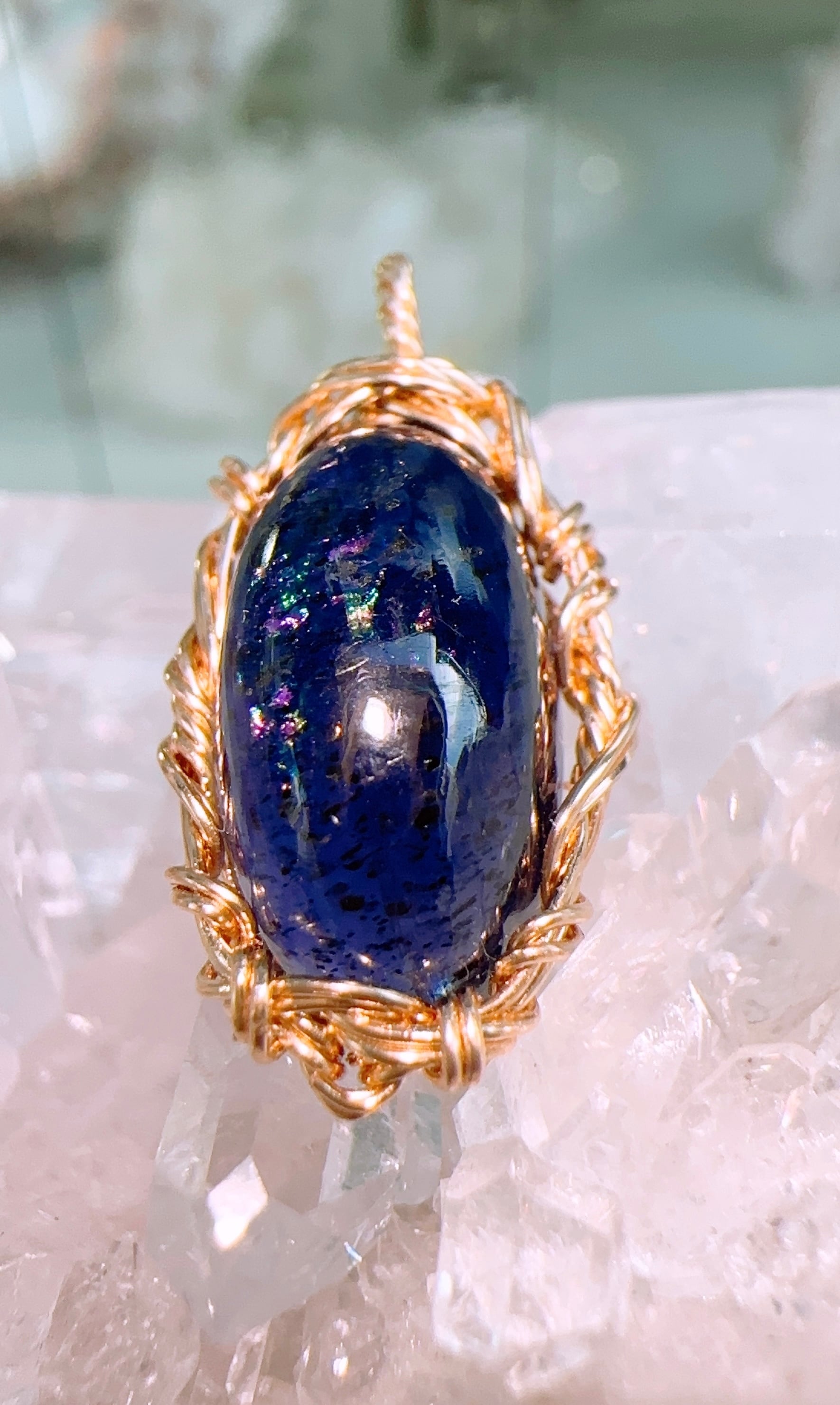 アイオライトサンストーンC☀️ワイヤーアートペンダント