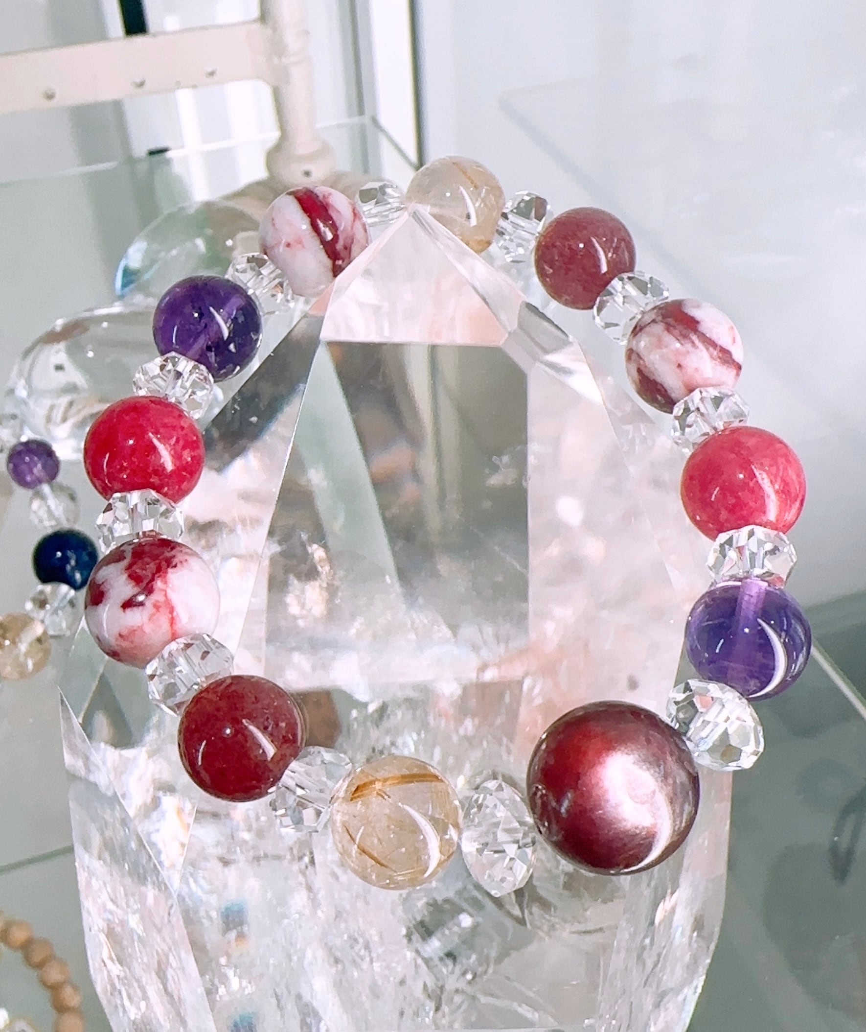 希少価値の高い天然石を組み合わせ、世界で一つだけの美しいお守りブレスレットです。