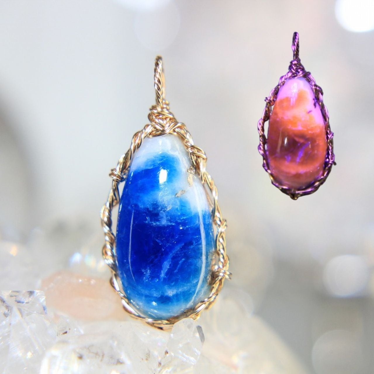 当店のワイヤーアートは天然石に合わせて、一つ一つハンドメイドで仕上げております。天然石をワイヤーでなるべく隠さないように工夫して、頑丈に仕上げました。手作業によるワイヤーアートには、不思議な優しさと美しさがあります。天然石もワイヤーアートも、同じものはふたつとない一点ものです。