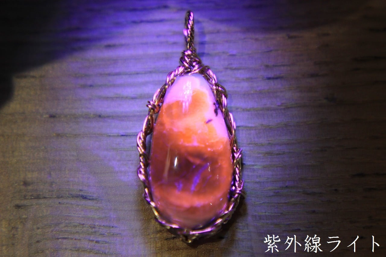 こちらのペンダントトップは、蛍光性を示す希少性の高いものとなります。