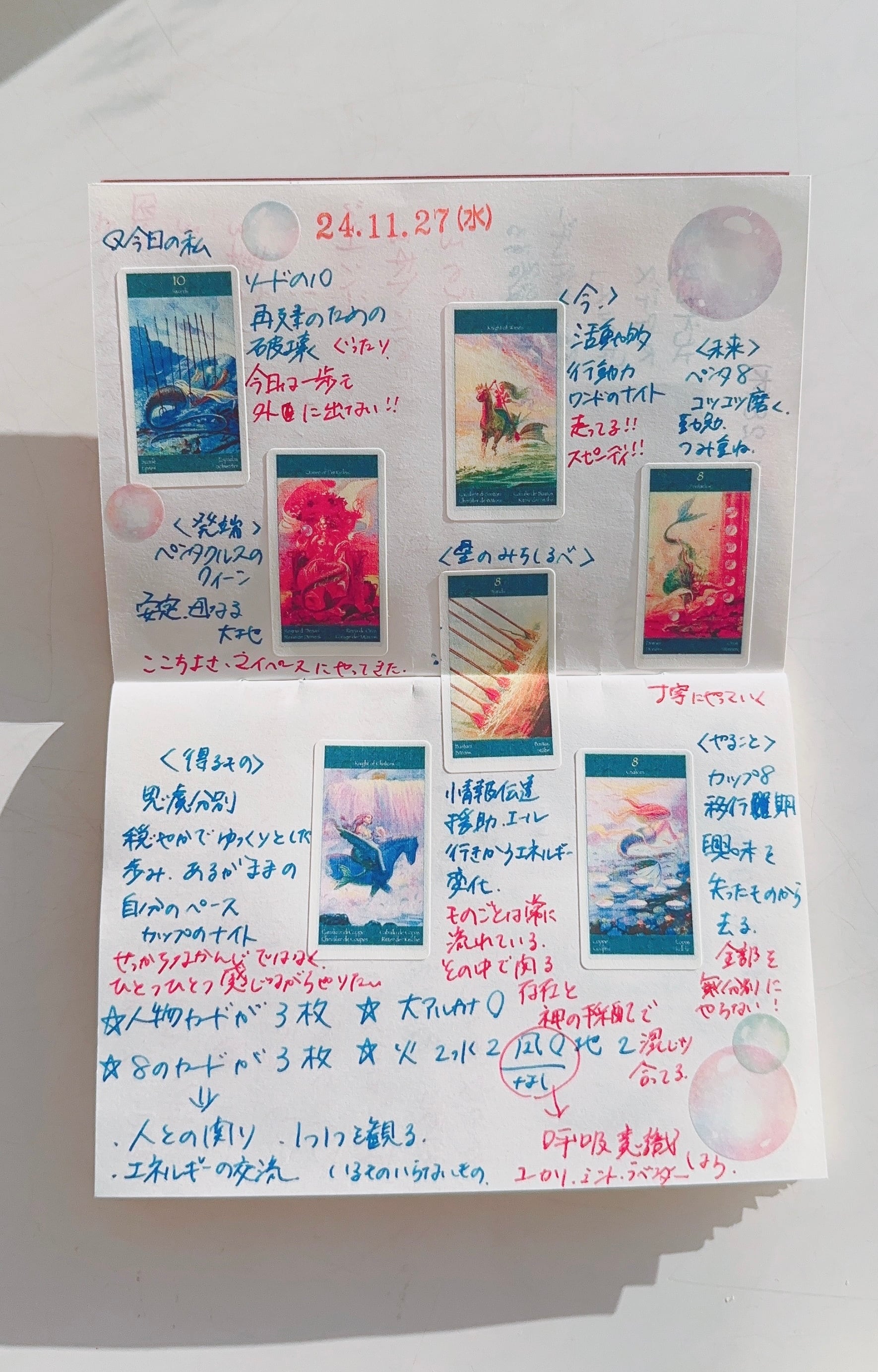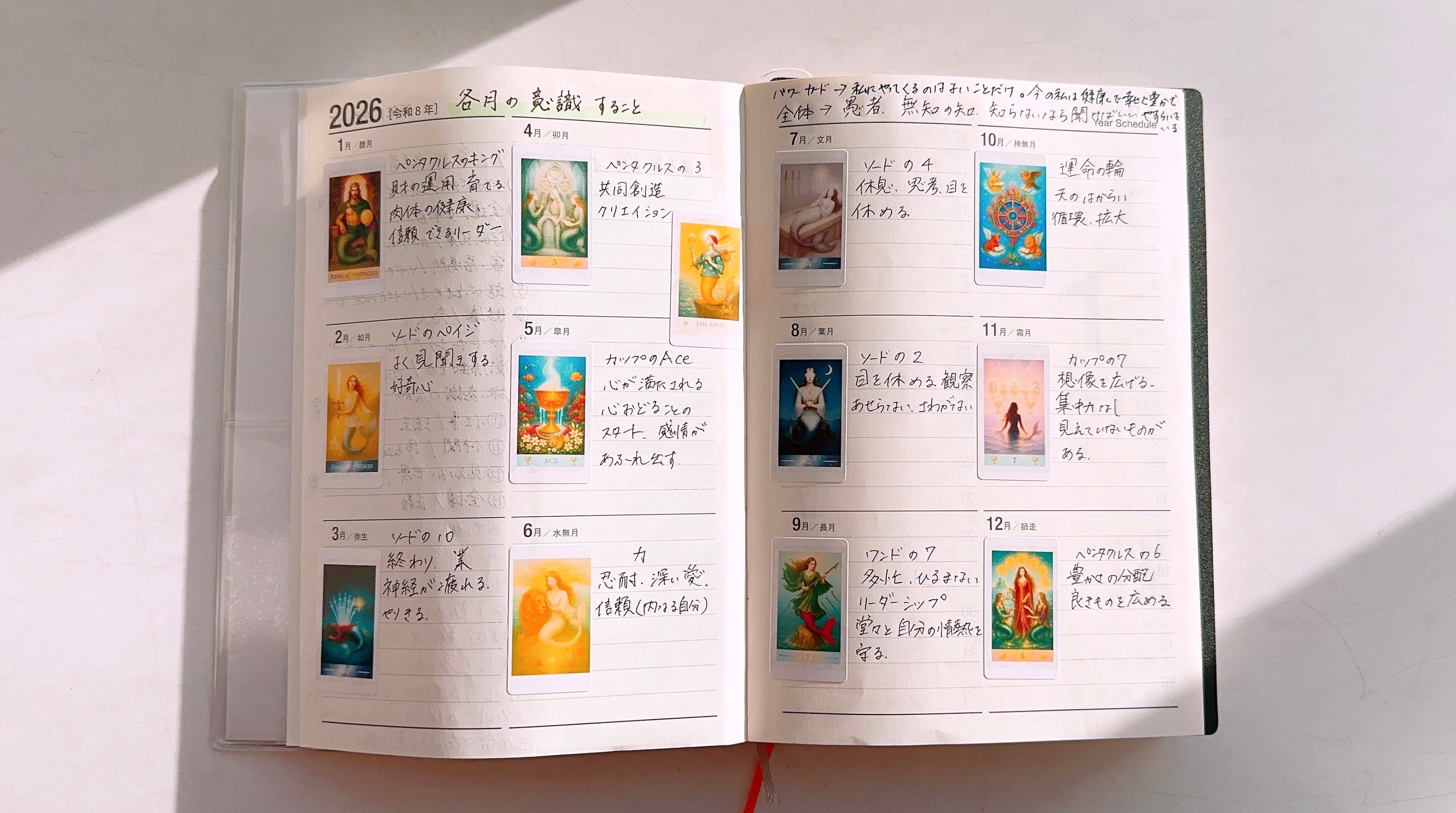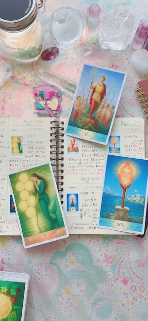 タロットカードを引いてノートに書き留めるだけの行為が、潜在意識のお掃除となり、自分と深く繋がる魔法の時間となります。
