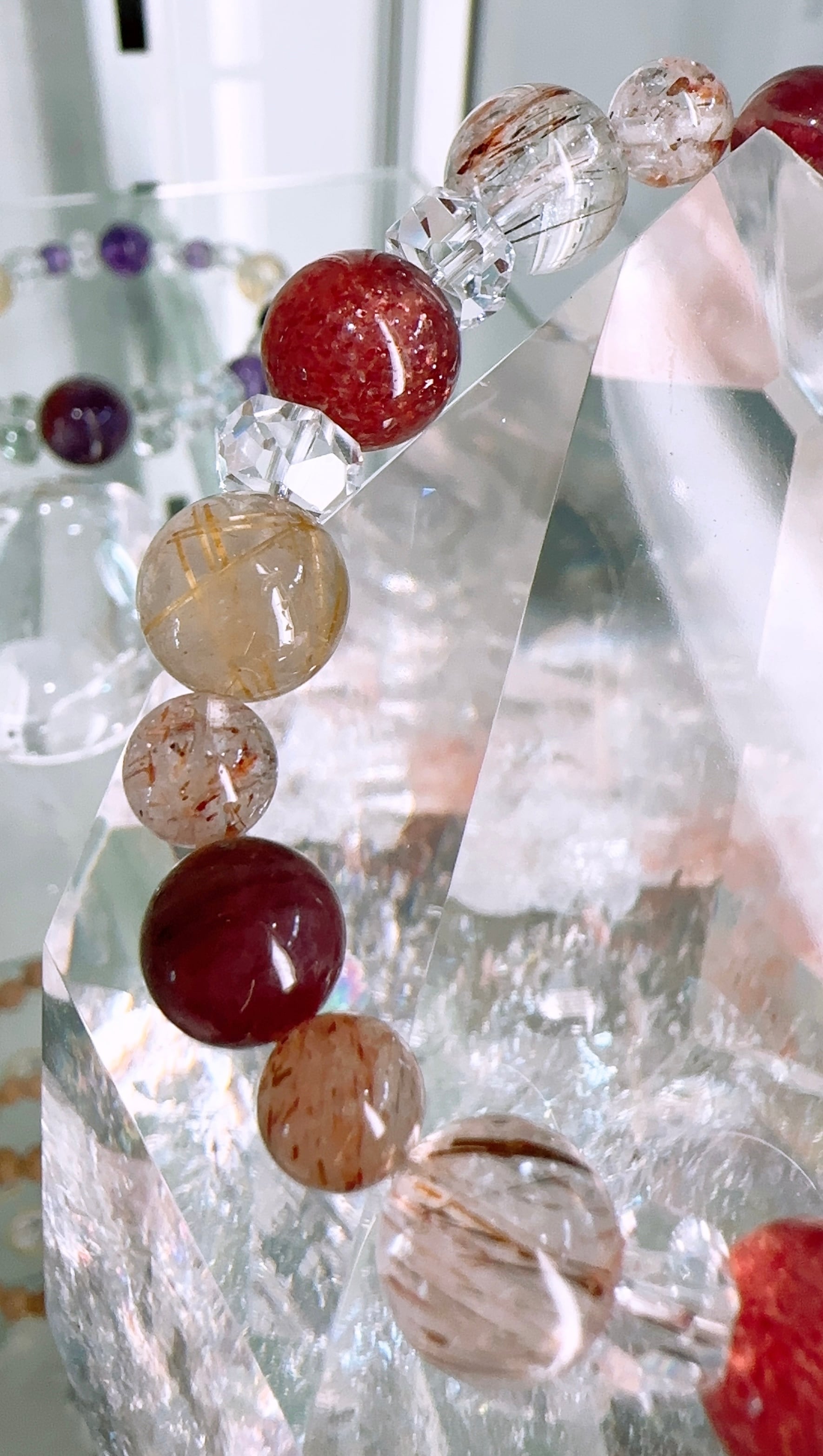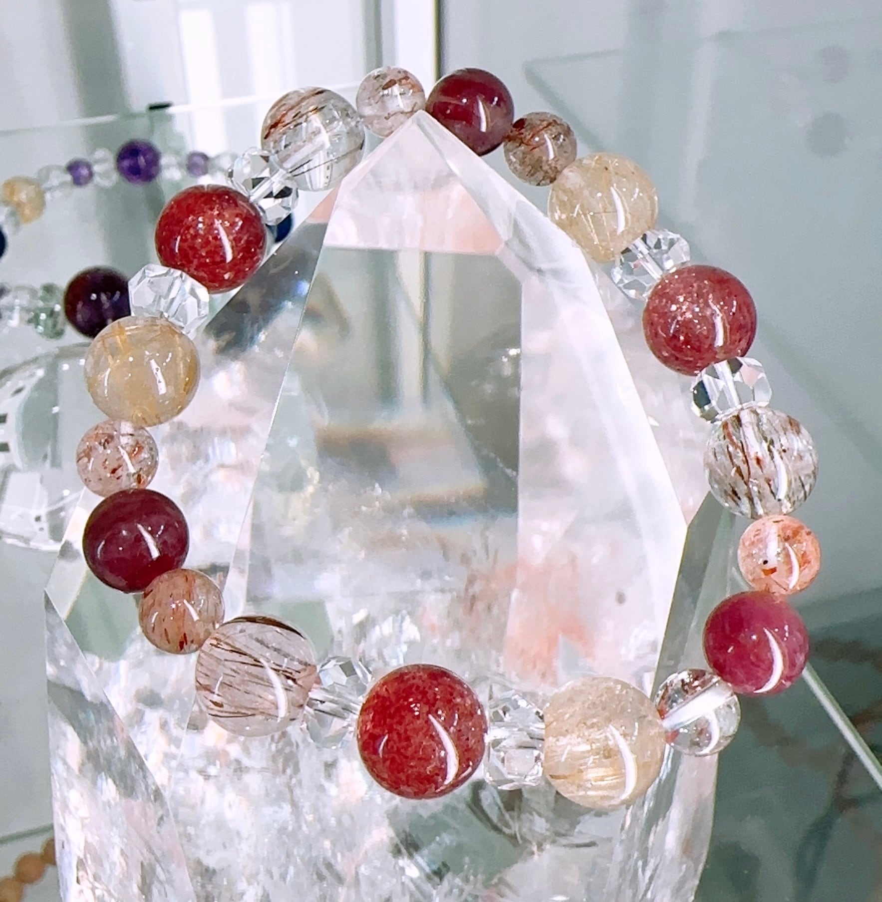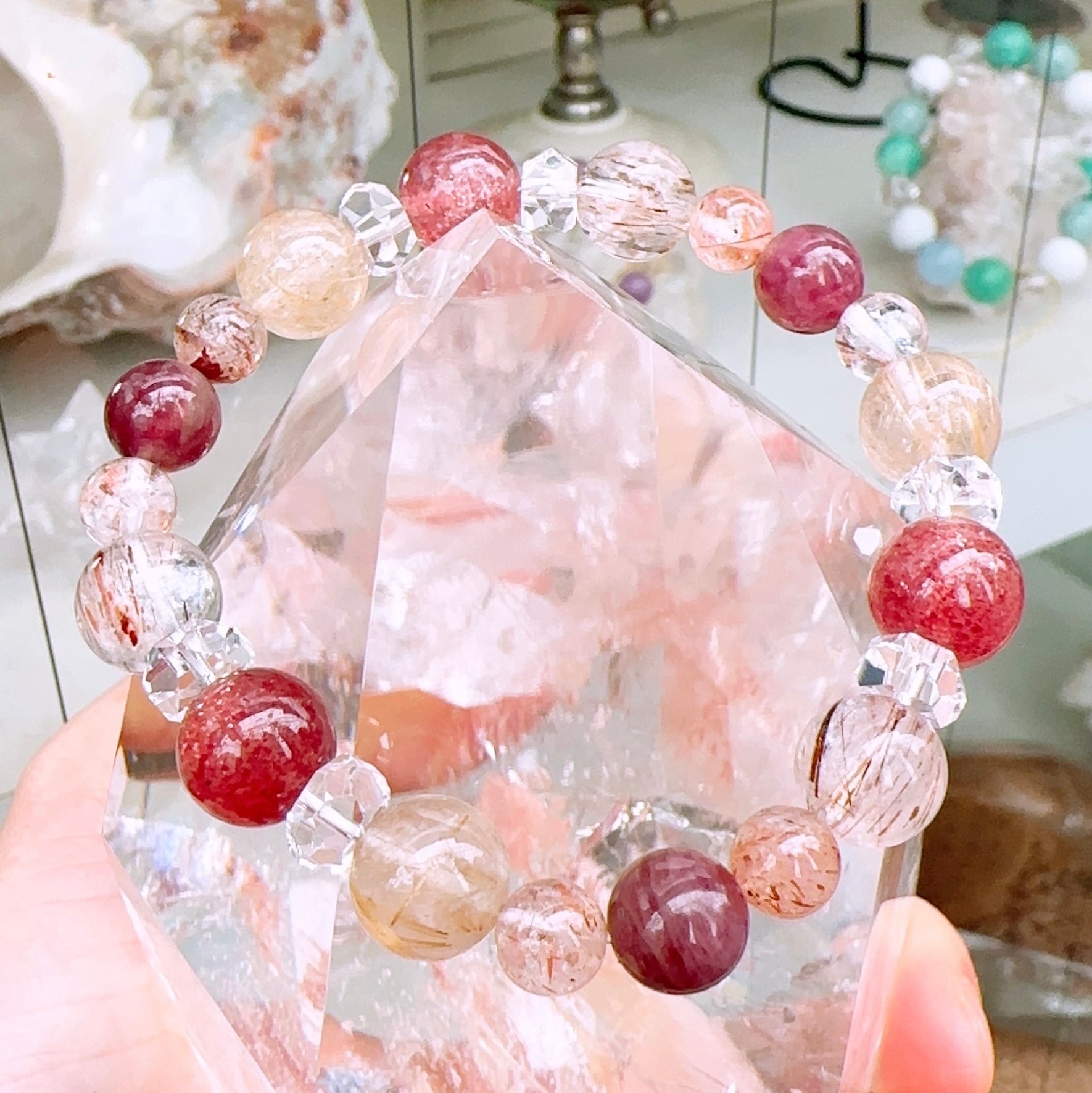 ストロベリークォーツとトルマリンのハーモニーブレスレット