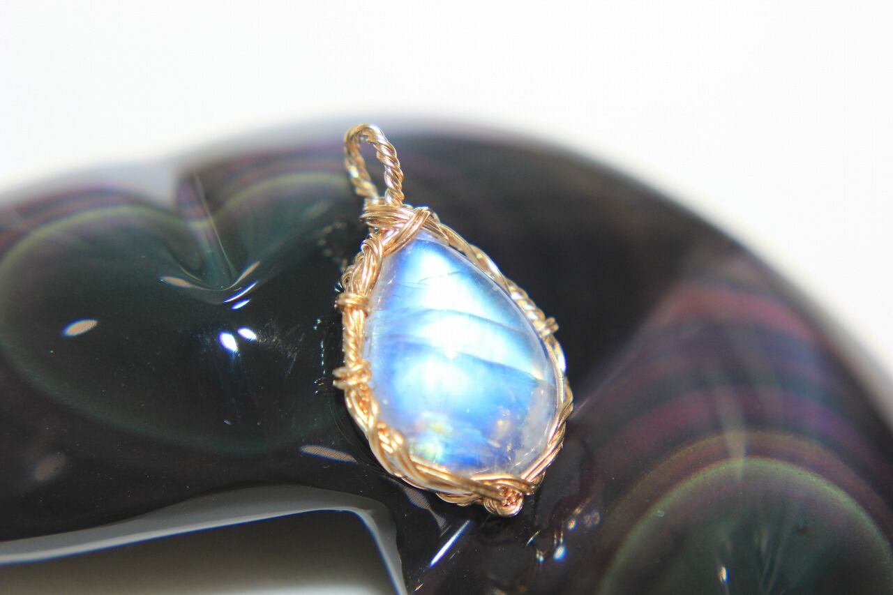 雫型レインボームーンストーン✨ワイヤーアートペンダント
