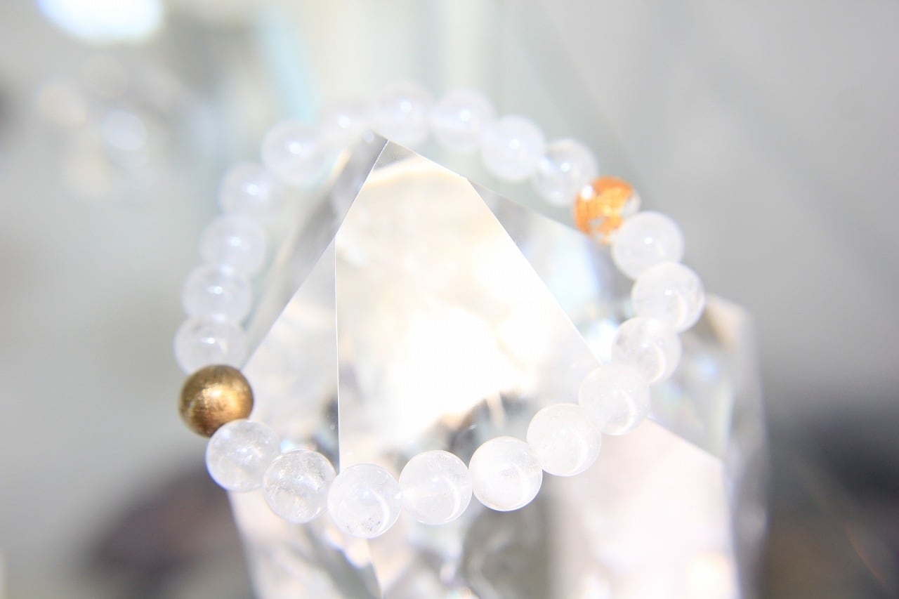 天然石サイズ ギベオン約8mm×1粒、金龍水晶8mm×1粒、ヒマラヤマニカラン水晶約8mm×20粒