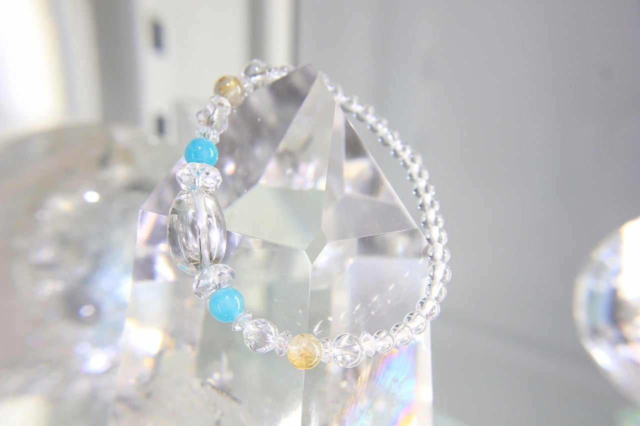野生のイルカの住む海のエネルギーを記憶させたクリアクォーツのブレスレットです。