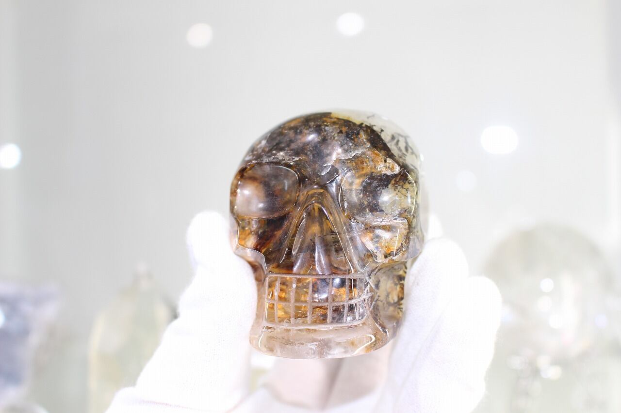 虹入りデンドリティッククォーツのクリスタルスカルが入荷しました。