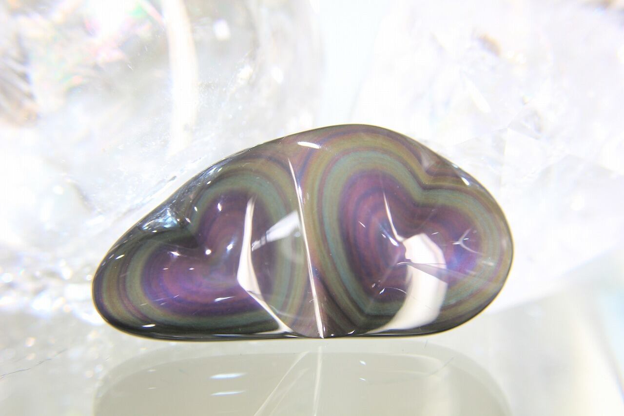 二つのハートが仲睦まじく並んだレインボーオブシディアンが入荷しました。