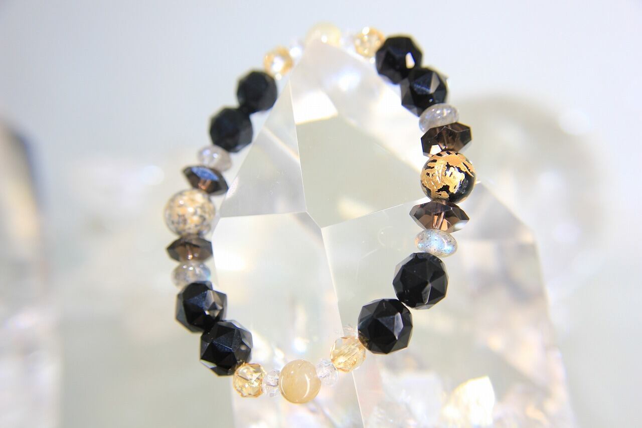 【モリオン、オニキスの金龍、鞍馬石のブレスレット】