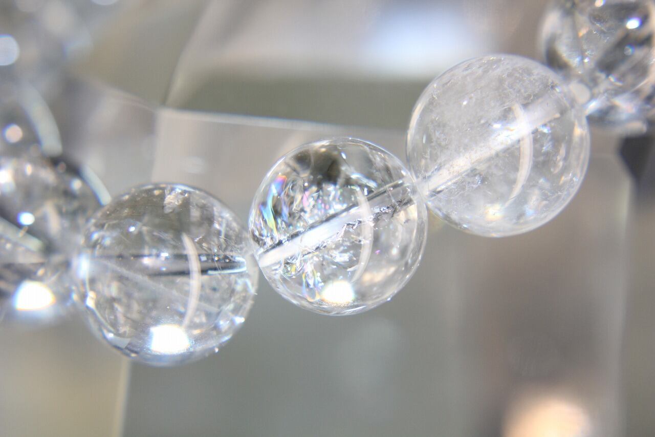 透明感の高い水晶ポイントの中にクラックが入り、光の角度によって虹が現るものを、
