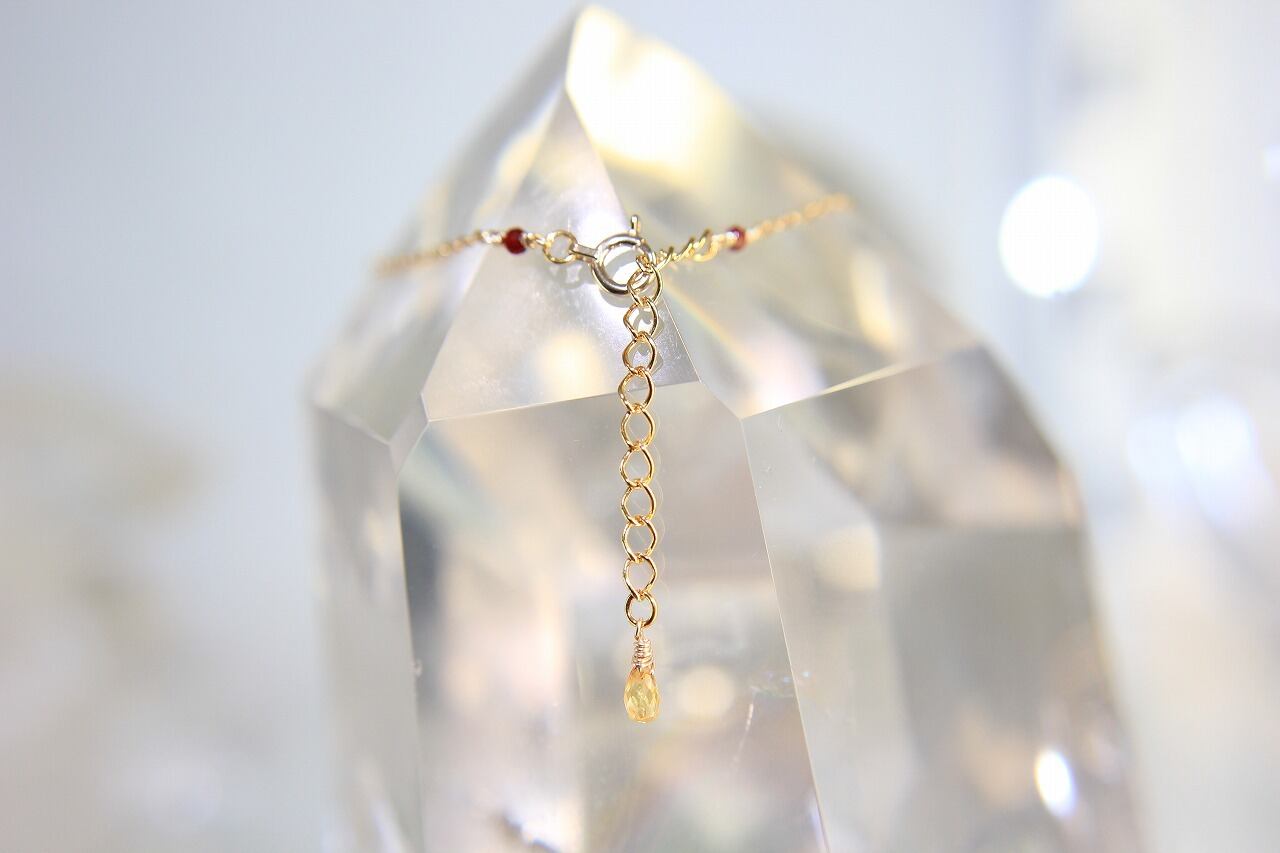 繁栄をもたらす神聖なイエローサファイアの雫をつけて、ポジティブエネルギーで持ち主を守るブレスレットを作りました。