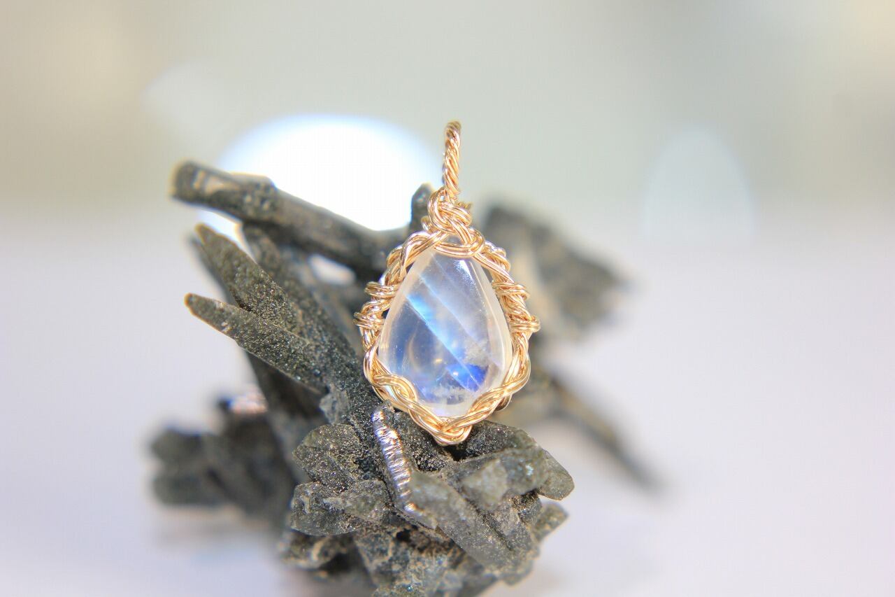 雫型ブルームーンストーン✨ワイヤーアートペンダント