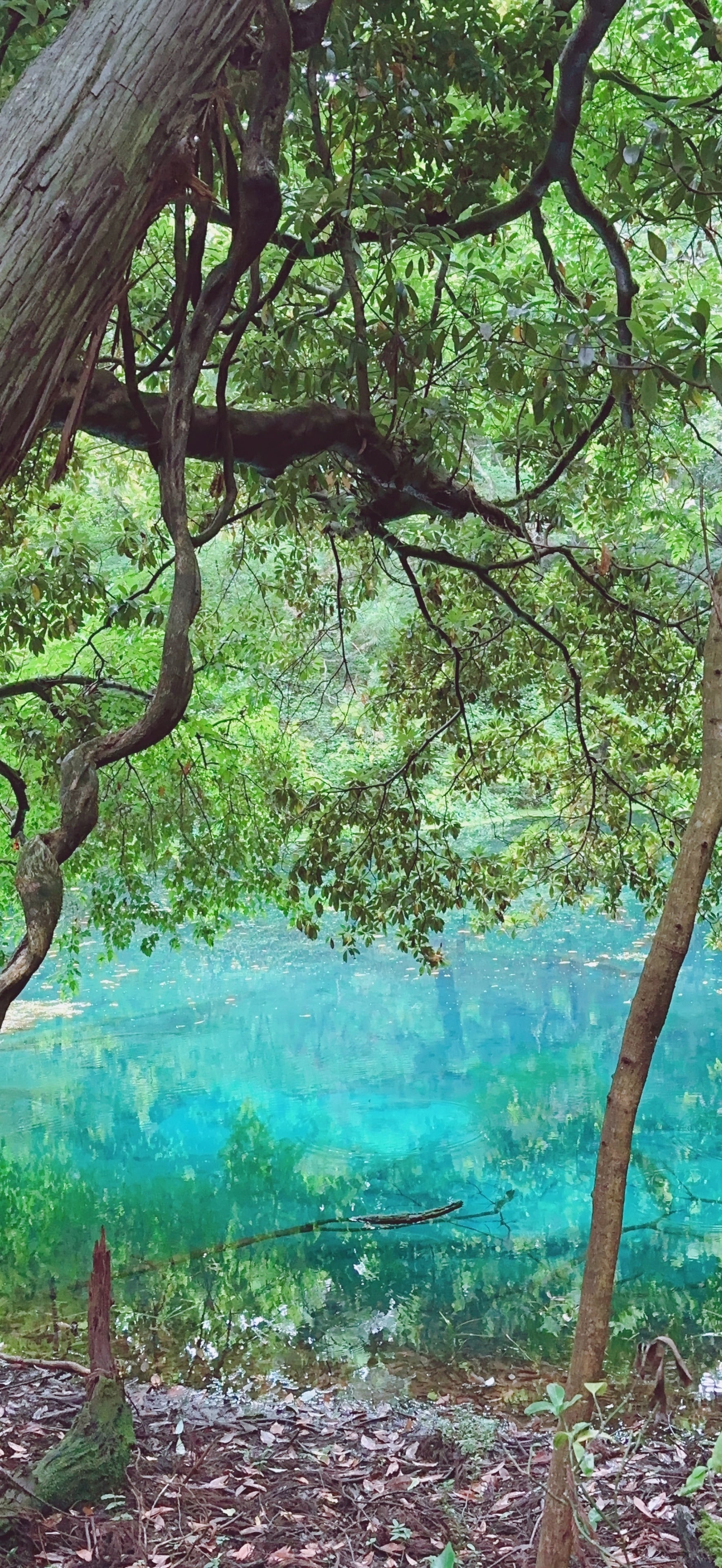 清らかなブルーグリーンは、静かな山奥でこんこんと湧き続ける湧水湖のようです。